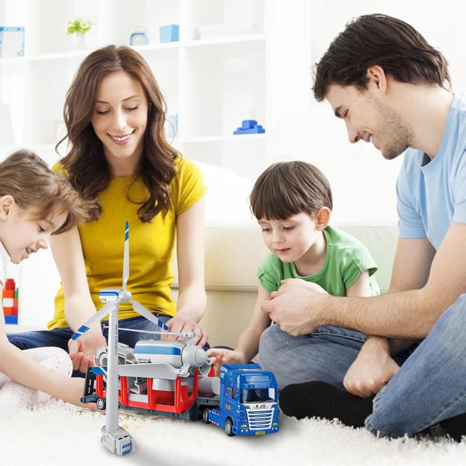 Meccanismo inerziale Push and Go: il camion muove da solo dopo una semplice spinta, suscitando eccitazione e promuovendo l'attività fisica. Pale girevoli della turbina eolica: il modello della turbina eolica è dotato di pale della ventola che ruotano liberamente, introducendo i bambini ai concetti meccanici di base attraverso il divertimento interattivo. Design multifunzionale 2 in 1: contiene un camion con rimorchio a pianale sterzante e un modello di generatore eolico assemblabile, che offre modalità di gioco sia di guida che di costruzione. Valore di apprendimento educativo: combina ingegneria, assemblaggio e gioco di movimento per sviluppare la coordinazione occhio-mano, capacità di risoluzione dei problemi e interesse precoce per i concetti di energia rinnovabile. Materiali sicuri e robusti: realizzati in plastica priva di BPA con bordi arrotondati per garantire la completa sicurezza dei bambini pur resistendo ai giochi difficili.