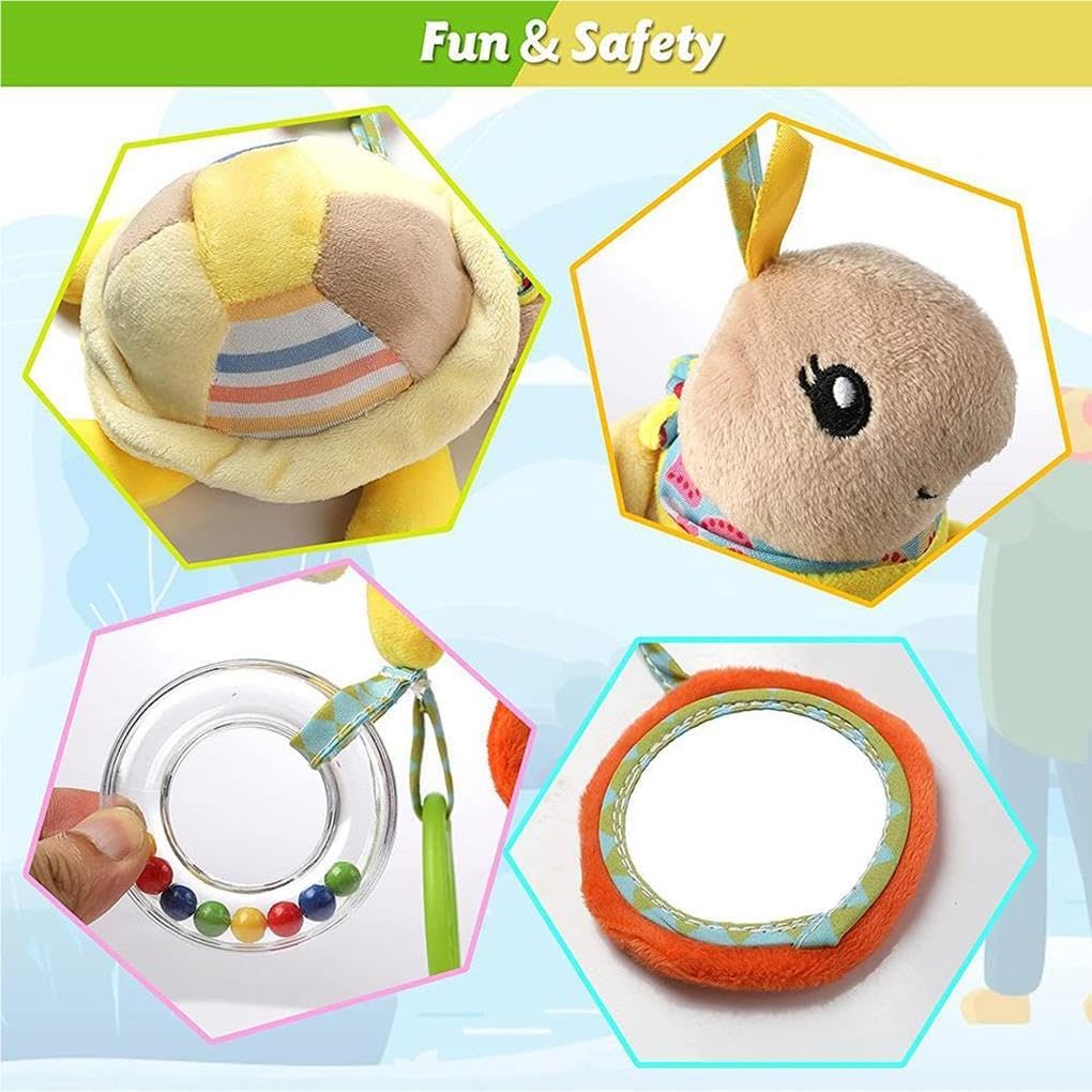Design con fibbia: la chiusura solida e affidabile è comoda per appendere piccoli ciondoli Caratteristiche: L'orecchio ha una carta ad anello incorporata. Quando lo pizzichi, ci sarà un suono frusciante nitido. Al bambino piace effetto; La gomma per alimentare può alleviare il disagio durante la dentizione Anello a manovella: l'anello a manovella può attirare l'attenzione del bambino e migliorare l'interazione genitore-figlio Capacità cognitiva: il bambino conosce se stesso da questo piccolo specchio di sicurezza per coltivare la sua capacità cognitiva