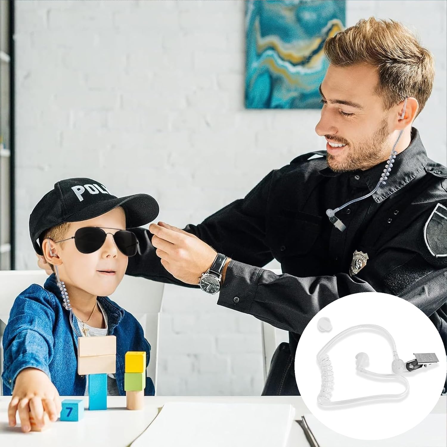 【Giocattoli spia】Le nostre cuffie spia con tubi trasparenti ti fanno sembrare più una spia o un agente. Questo set è molto adatto a persone con personalità e senso di giustizia. Una buona scelta per i bambini che vogliono giocare alla polizia. 【Materiali di alta qualità】I nostri auricolari spia sono realizzati in ABS e metallo di alta qualità, leggeri e resistenti, non tossici e inodori. Le cuffie sono dotate di clip metalliche che puoi attaccare facilmente alla maglietta. 【Dimensioni】la lunghezza delle cuffie elastiche trasparenti a spirale è di 50 cm. Collegamento del tubo trasparente dell'auricolare, che ti fa sembrare un agente segreto o un protettore del corpo. 【Ampia gamma di applicazioni】Le nostre cuffie spia per agenti possono essere utilizzate per cosplay, cosplay e molte feste a tema diverse. 【Regalo unico】Non è solo un giocattolo divertente, ma promuove anche lo sviluppo di abilità importanti come il gioco sociale, la creatività e l'immaginazione. È un regalo perfetto per i bambini che amano l'avventura e amano interpretare ruoli diversi.
