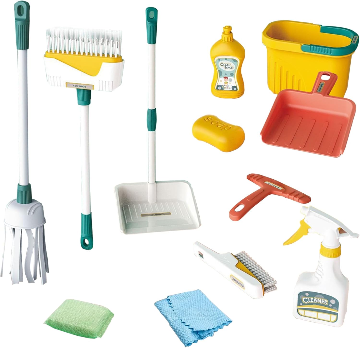 Qualità per un gioco realistico: realizzato con materiali in plastica, tessuto e spugna di qualità, questo set per la pulizia dei bambini garantisce un'esperienza di gioco sicura e realistica..Il mocio, con la testina in tessuto, e il flacone spray, che può essere riempito con acqua per un effetto spray realistico, aggiungono autenticità all'avventura di pulizia. Migliora abilità e abitudini: il set per la pulizia dei bambini non è solo un accessorio per il gioco;.è un'opportunità per i bambini di coltivare abitudini essenziali..Impegnandosi in attività pratiche di pulizia, i bambini migliorano le loro abilità pratiche, riducono il tempo trascorso davanti allo schermo e sviluppano un forte senso di igiene personale..Incoraggiateli a mantenere uno spazio ordinato e a promuovere abitudini responsabili fin dalla tenera età. Set ricco di valore per il gioco e l'apprendimento: il nostro set di pulizia giocattoli per bambini include un pacchetto completo di 12 strumenti di pulizia, tra cui 1 scopa, 1 secchio, 1 scopa, 1 paletta, 1 paletta portatile, 1 sapone, 1 raschietto, 1 spazzola, 1 panno per la pulizia, 1 spugna, 1 flacone spray, 1 detergente..Il set di pulizia per bambini non solo intrattiene ma istruisce anche, rendendolo una scelta perfetta per giocare e imparare a fare le faccende domestiche. Sviluppo delle competenze e rafforzamento della fiducia: il nostro set per la pulizia dei bambini è progettato per aumentare lo sviluppo delle competenze e la fiducia in se stessi nei bambini..Completando in modo indipendente le attività di pulizia, i bambini affinano la coordinazione occhio-mano e le capacità motorie..Caratterizzati da superfici lisce e prive di sbavature, i giocattoli garantiscono un gioco sicuro. Il perfetto per i piccoli aiutanti: questo set da gioco per la pulizia incoraggia i bambini a imitare i loro genitori, favorendo un senso di realizzazione e fiducia..Ideale per bambini dai 3 anni in su, questa esperienza di apprendimento pratico è l'ideale per Natale, compleanni o qualsiasi occasione speciale.