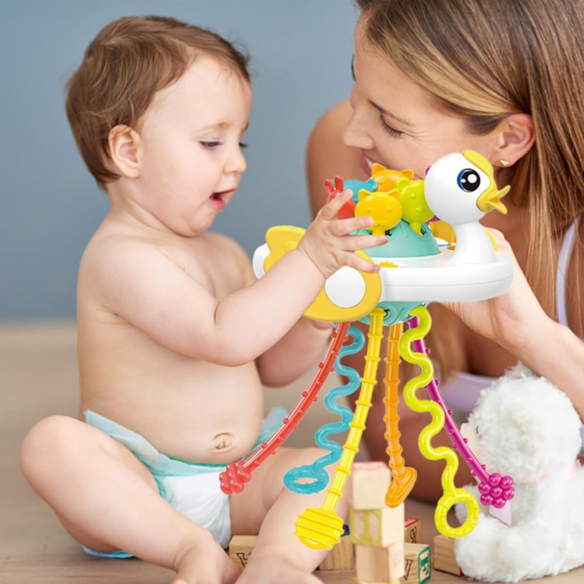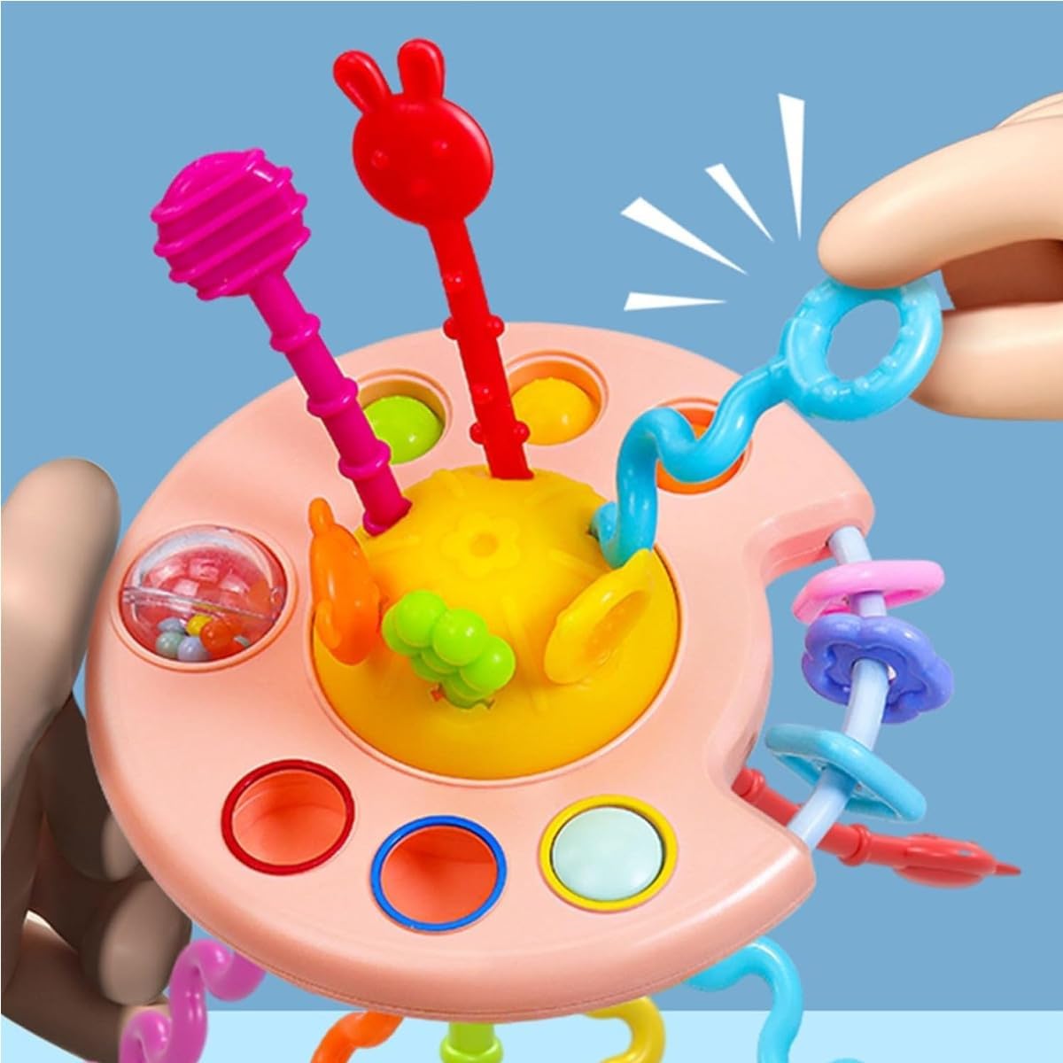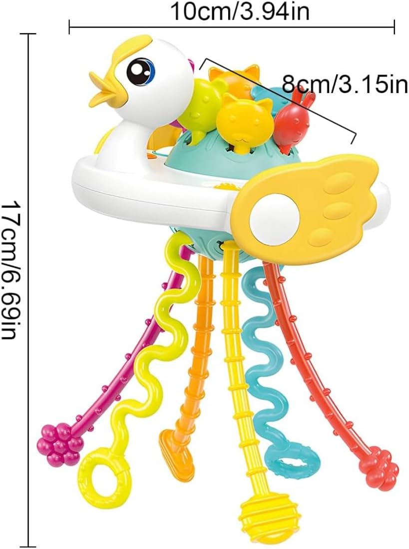 Design interattivo a cordicella per lo sviluppo sensoriale: Questo affascinante giocattolo attività in silicone a forma di anatroccolo con cordicella da tirare coinvolge il vostro piccolo con colori vivaci e trame variate. Sperimenta suoni e vibrazioni diversi—migliorando la coordinazione occhio-mano e le capacità motorie fini attraverso azioni giocose e ripetitive. Materiali di alta qualità per la massima tranquillità: Realizzato con silicone e ABS di alta qualità, questo giocattolo per l'infanzia antiproiettile è costruito per resistere a caduti e giochi vivaci. Facile da pulire con acqua calda, è perfetto come giocattolo da bagno o compagno di viaggio. Intrattenimento portatile e ideale per i viaggi: Leggero e compatto, questo giocattolo portatile per bebè semplifica i viaggi mantenendo il bambino impegnato senza causare disturbo. Che si tratti di viaggi in auto, voli o uscite quotidiane, si infila senza sforzo nelle borse per pannolini—rendendo i viaggi senza stress con i bebè una realtà. Il suo design resistente assicura un divertimento affidabile in camerette, giardini o ambienti prescolastici. Apprendimento ispirato attraverso il gioco: Questo giocattolo sensoriale promuove l'esplorazione indipendente e la crescita cognitiva. Stimolando la curiosità attraverso le azioni di tirare e afferrare, aiuta a sviluppare creatività, immaginazione e capacità di problem solving—il tutto allineandosi ai principi educativi della prima infanzia. Il regalo perfetto per i bambini in crescita: Un'aggiunta essenziale alla collezione di ogni piccolo esploratore, questo giocattolo attività a cordicella incoraggia un gioco più intelligente e fantasioso.