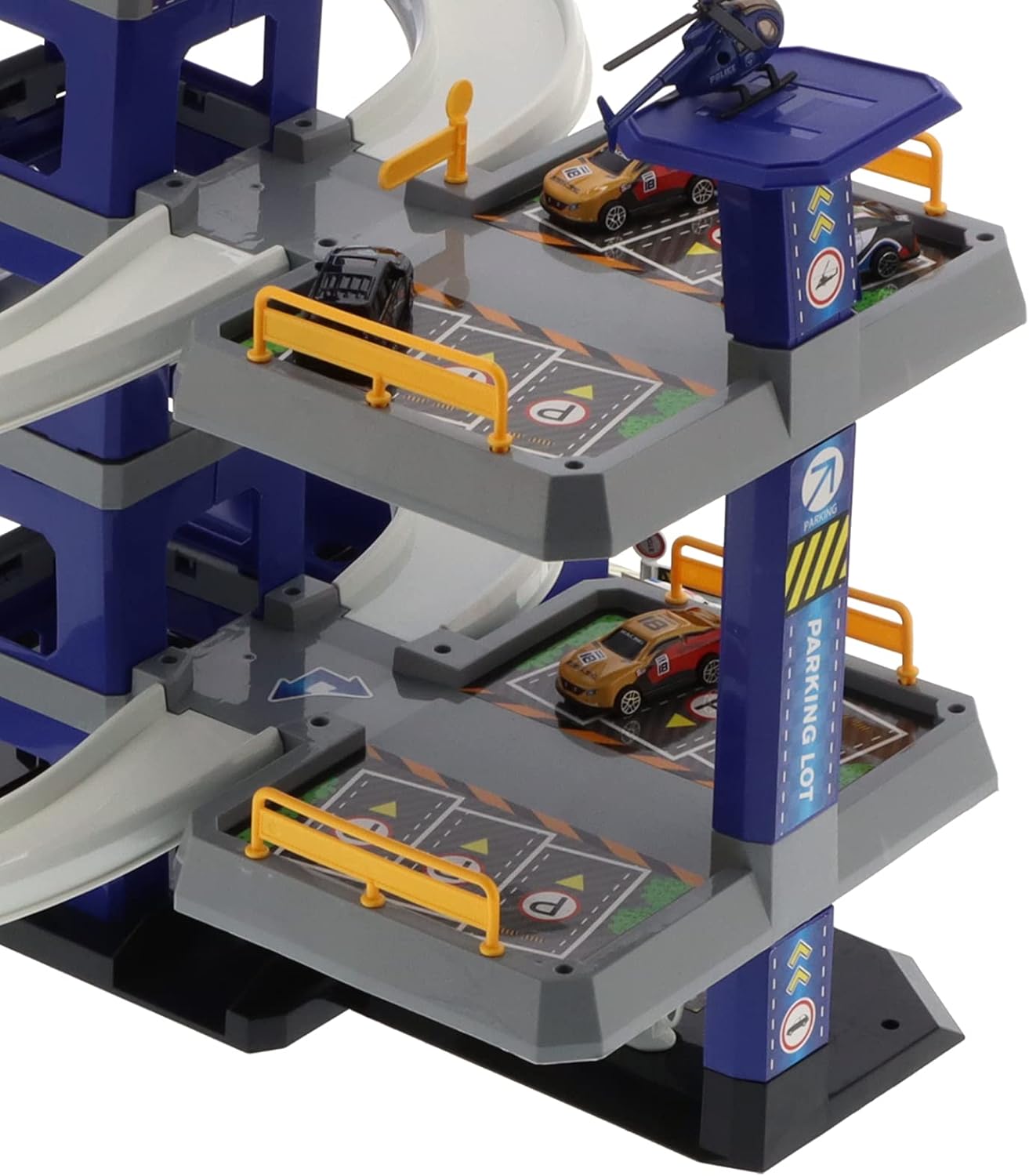 Contiene pista, parcheggi, auto giocattolo del pacchetto, forte giocabilità, i bambini possono giocare per ore, aggiungere più divertimento per i bambini. Metti l'auto nell'ascensore del parcheggio, quindi premi il pulsante blu o rosso per riprodurre la musica e accenderla, e l'ascensore del parcheggio salirà o scenderà. Premi di nuovo il pulsante e si fermerà. Ci sono alcuni binari e rampe nel garage dei giocattoli, per far imparare ai bambini le regole della strada individuando i segnali stradali sulla strada o nei parcheggi. I bambini possono assemblare le proprie tracce in modo indipendente o con i genitori o gli amici, migliorando le loro capacità motorie, la coordinazione occhio-mano, l'immaginazione e la creatività. Il genitore può giocare con i bambini, migliorare l'interazione genitore-figlio e aiutare a promuovere le relazioni intime.