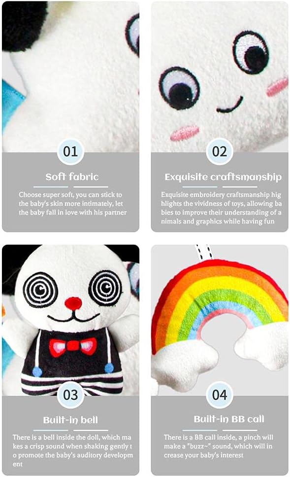 Giocattoli interessanti: questo ciondolo giocattolo con culitto ha simpatici pendenti stellari, pendenti a fiori, pendenti arcobaleno e pendenti per animali, che possono essere delicatamente scosso per attirare l'attenzione dei bambini e calmare le loro emozioni. Sicurezza del materiale: il ciondolo per il pellicola del per bambini è realizzato in materiale lussuoso di alta qualità, morbido, sicuro, non fluorescente e pieno di cotone PP morbido, che è molto amichevole per la pelle delicata del bambino. Giocattoli educativi: l'immagine dei cartoni animati e il design del colore caldo possono promuovere lo sviluppo visivo del bambino e la percezione del colore. Le dimensioni ridotte sono convenienti per le piccole mani del bambino per afferrare ed esercitare l'abilità di presa. Facile da appendere: il giocattolo sospeso adotta un design appeso a corda. Puoi facilmente appendere questo giocattolo per bambini su un passeggino, cambiare tavolo o seggiolino auto. Buon present: questo squisito giocattolo appeso ai passeggini è un present di neonato ideale, adatto per i bambini da 0 a 3 mesi, 3-6 mesi e 6-12 mesi.