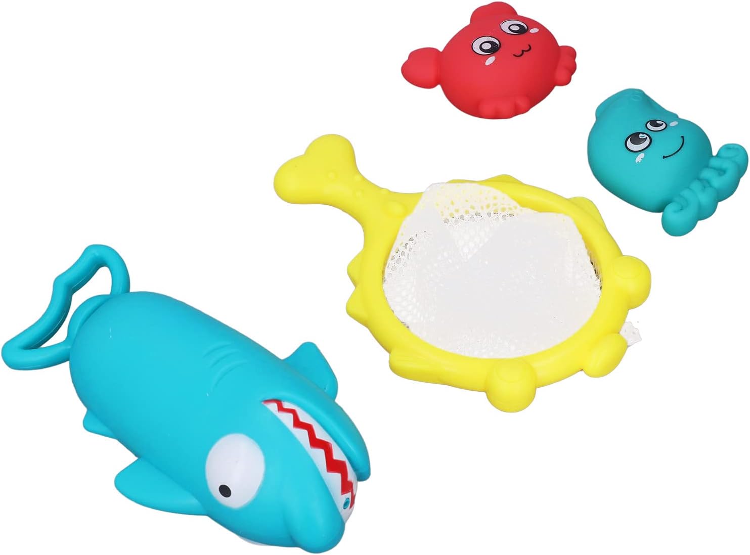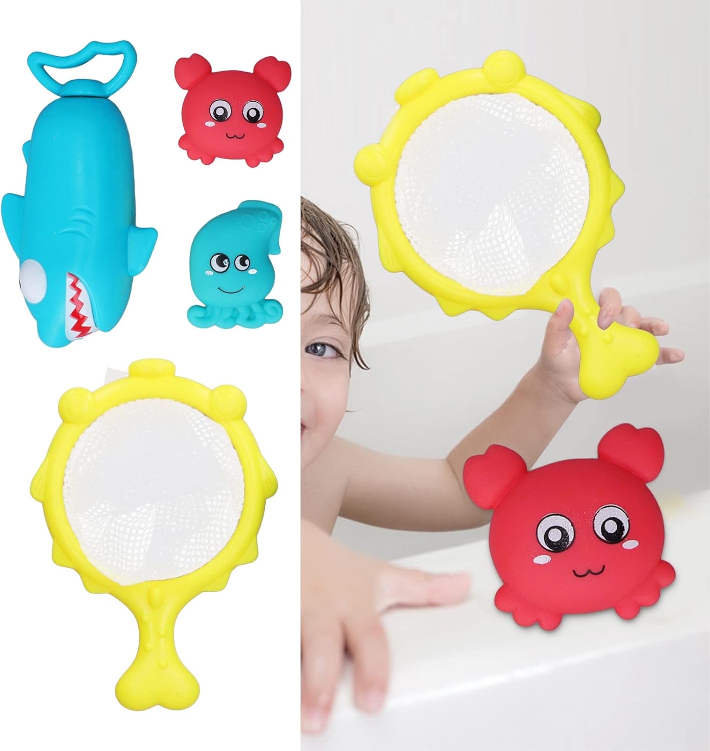 Il pacchetto [infinito di divertimento del bagno] include spruzzare pesce, 2 giocattoli per animali che stringono e una rete da pesca per il gioco interattivo. [Rafforza Bond] Gioca con i bambini nella vasca da bagno per migliorare l'interazione genitore-figlio e rendere divertente il bagno. [Sviluppa le capacità motorie] Modalità di gioco multipli con l'aiuto per i giocattoli per i pesci spruzzati in abilità motorie e sviluppo del coordinamento degli occhi. [] Ideale per compleanni e vacanze, il giocattolo galleggiante per la rete da pesca può anche essere utilizzato in piscina. [Materiali sicuri] realizzati con materiali di alta qualità e ABS con bordi arrotondati per la sicurezza dei bambini durante il gioco.