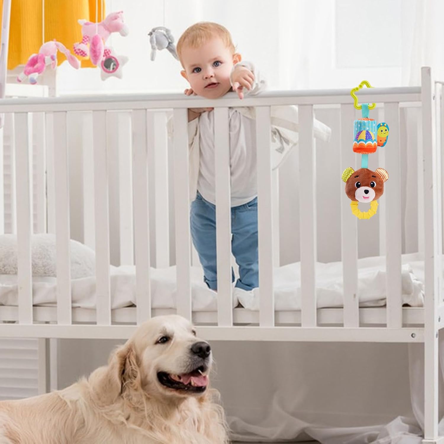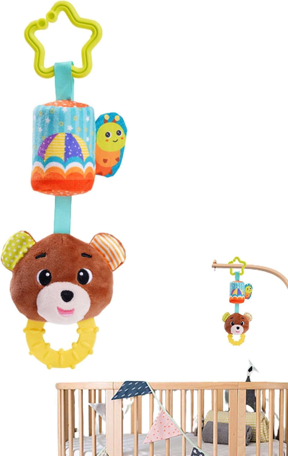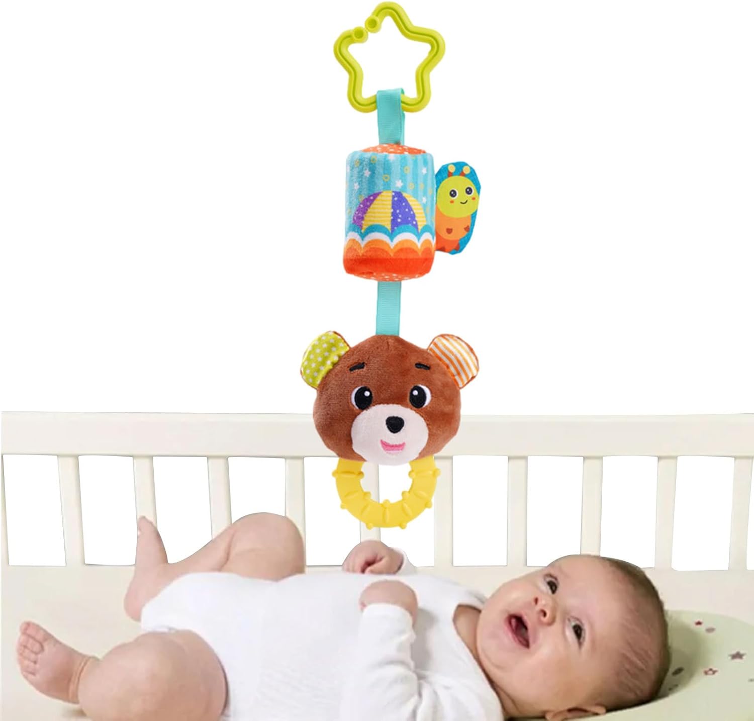 Materiale di alta qualità: realizzato con materiale morbido e confortevole, questi sonagli appesi sono perfetti per i bambini per mangiarli senza ferirsi la bocca e promuovono lo sviluppo orale. Il gancio è realizzato in materiale per uso alimentare, garantendo sicurezza e durata. Compagno di gioco per: fai piacere al tuo bambino piccolo con un sonaglio sospeso che è un compagno felice, offrendo un mondo di immagini nuove e belle grazie al suo motivo animale dei cartoni animati. Stimola la curiosità e l'immaginazione, perché tuo figlio gode di un partner divertente e giocatore per ore. Qualità infrangibile: il design delicato e resistente alle cadute e la lavorazione complessa rendono i nostri giocattoli appesi perfetti per i giochi quotidiani di. Non importa quanto sia difficile il gioco, impastare e sparare non causerà alcun danno. Stimolazione sensoriale migliorata: il giocattolo Hang Rattle presenta un design vibrante e un suono rilassante che può stimolare i sensi del bambino. Può offrire loro un'esperienza sensoriale unica aiutandoli a sviluppare le loro capacità cognitive e motorie. Migliorare la forza di presa della mano: il nostro giocattolo a sonaglio sospeso è perfetto per stimolare la curiosità del tuo bambino e migliorare la forza di presa della mano. Appendilo alla culla o ovunque con ganci per attirare l'attenzione del tuo bambino e guardarlo giocare ed esplorare.