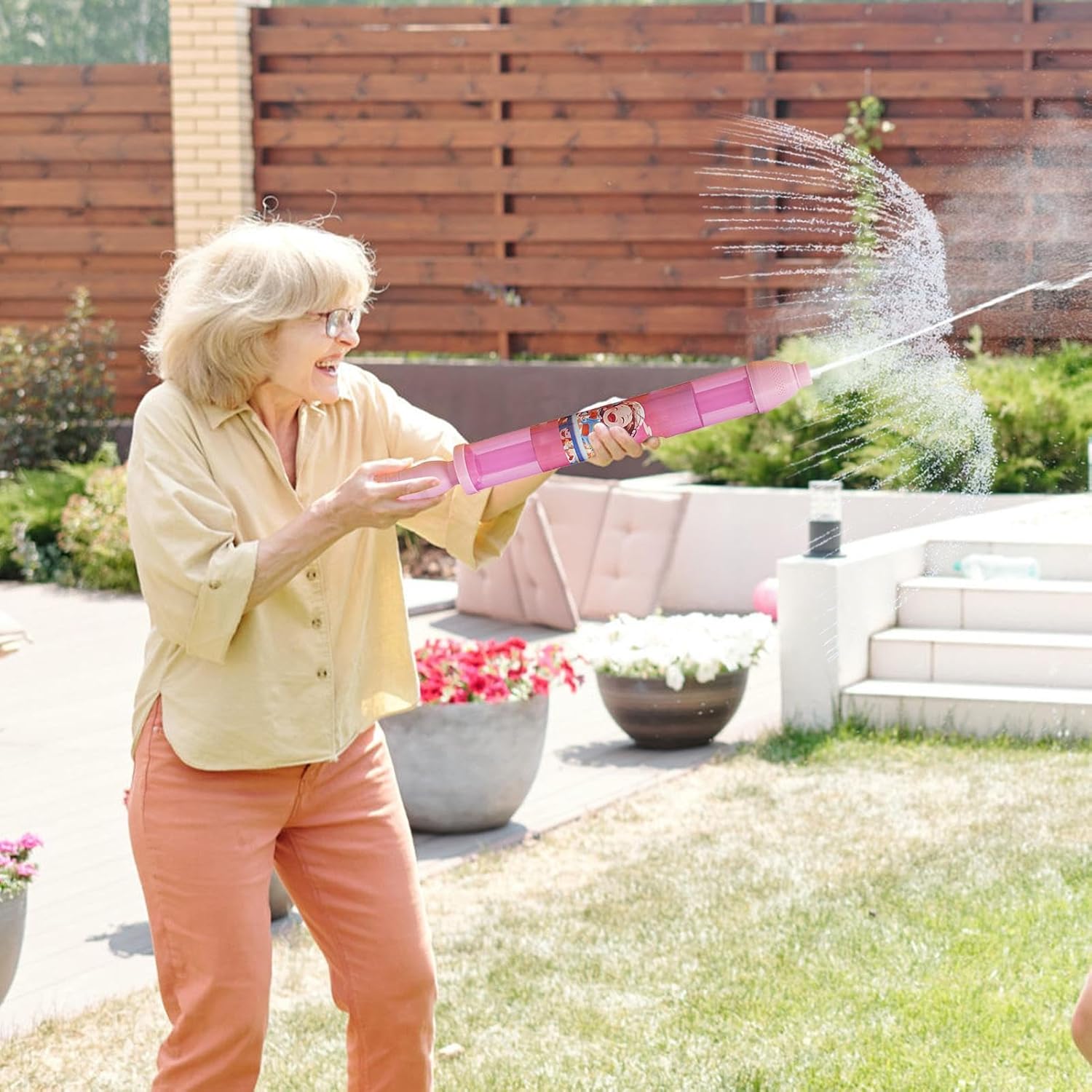 uno schermo affascinante: trasforma i tuoi combattimenti d'acqua in occhiali accattivanti con l'ammollo d'acqua. Blast Water in un modello unico ed esplosivo, creando un effetto visivo impressionante che lascerà tutti gli stupefacenti e divertenti. Relerazione rapida dell'acqua: basta caricare il serbatoio, tirare la maniglia e premere il grilletto per raffiche d'acqua veloci. Il design facile da usare garantisce ore di divertimento senza cuciture. Preparati per una rinfrescante avventura acquatica Struttura robusta: assicurati che i tuoi bambini si divertano senza fine con il nostro ammollo d'acqua realizzato con materiali innocui e innocui per l'ambiente che sono resistenti, assicurando che non si rompa facilmente, garantendo la loro sicurezza. Joy di raffreddamento: sperimenta la gioia di raffreddare le attività all'aperto dei bambini con l'ammollo d'acqua. Porta sorrisi e risate ai tuoi figli e fai riunioni di famiglia, viaggi in spiaggia e feste in giardino un'esperienza indimenticabile Ampiamente usato: mantieni il divertimento con il nostro ammollo d'acqua, progettato per il gioco estivo all'aperto. Un accessorio perfetto per avventure in spiaggia ed eventi in piscina. Ideale anche per riunioni per bambini, aggiungi gioia di emozione a qualsiasi collezione di favore