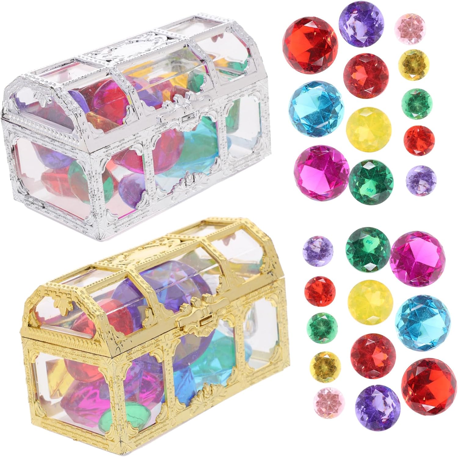 Divertimento e Apprendimento: Questi gioielli subacquei migliorano le tecniche di immersione in modo ludico, ideali per momenti familiari in piscina o attività sulla spiaggia come la ricerca di tesori marini con facilità Prese Ottimizzate:La progettazione studiata dei giochi subacquei offre dimensioni ideali e capacità generosa per migliorare il gioco, consentendo maneggevolezza senza sforzo durante attività acquatiche di gruppo con controllo sicuro degli oggetti. Gioco Sicuro: Grazie al PVC di qualità, questi giochi subacquei proteggono i bambini in piscina o vasca da bagno con performance robuste anti-deformazione, assicurando serenità durante il divertimento acquatico. Gioco Acquatico Coinvolgente: Stimolano la coordinazione occhio-mano attraverso cacce al tesoro subacquee con gemme colorate, offrendo momenti di gioco piacevole e ispirando creatività con il design a scrigno vintage. Pensiero Creativo: Portano sorrisi a bambini con giochi piscina divertenti, regalo significativo per occasioni speciali come compleanni o feste natalizie, simbolo di attenzione e affetto sincero