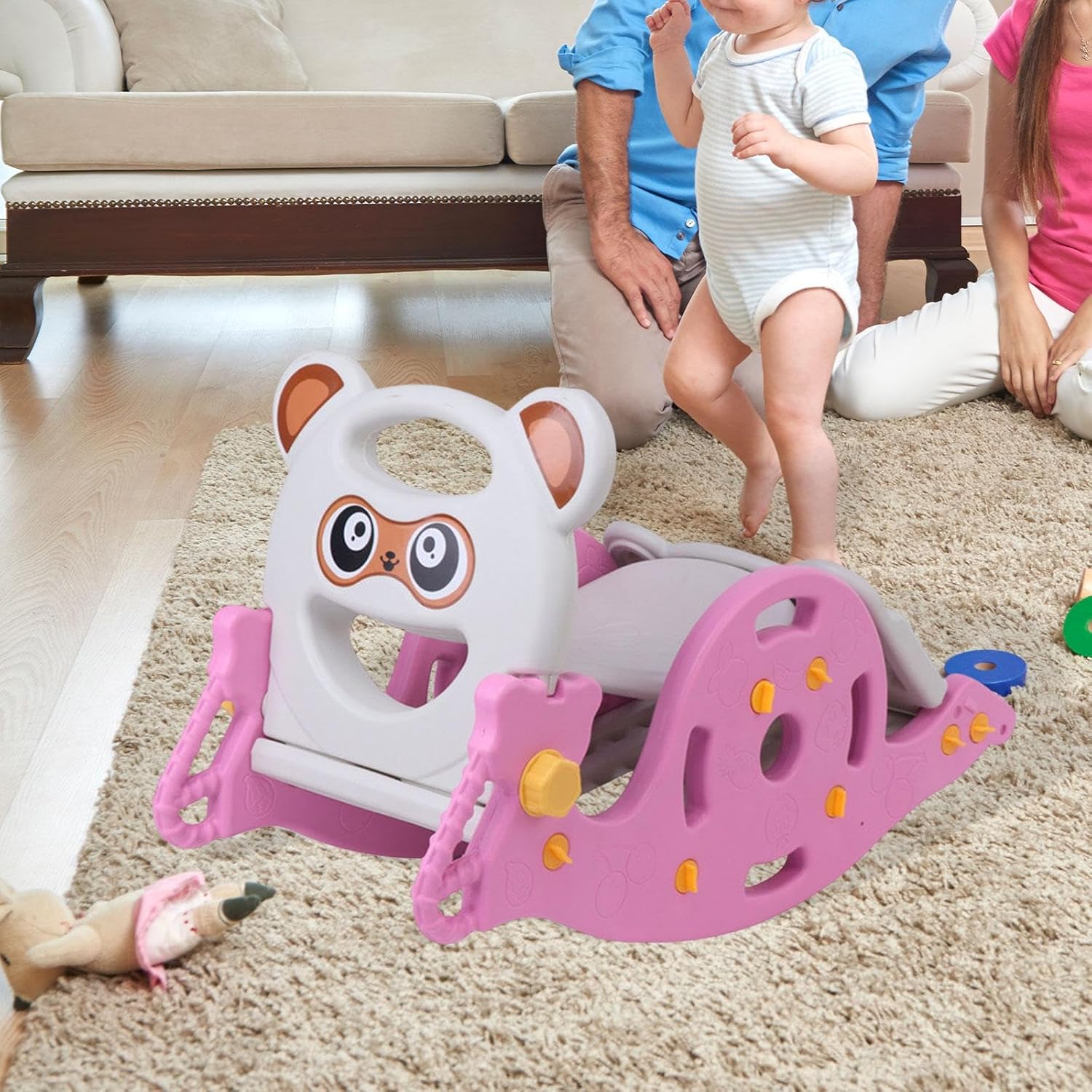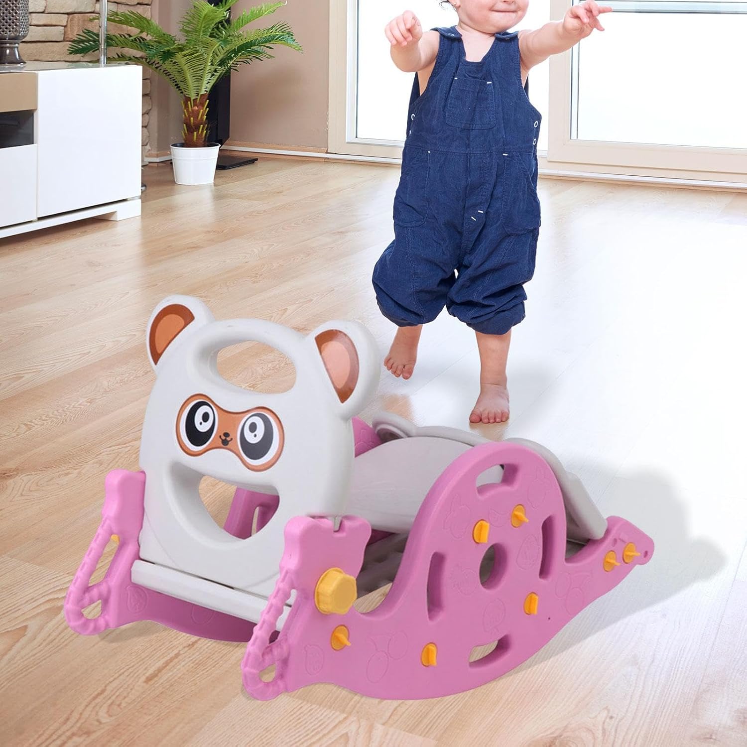 【Design salvaspazio】: lo scivolo è pieghevole e può essere riposto facilmente quando non in uso. Il suo design compatto consente di riporlo comodamente in qualsiasi angolo della stanza, rendendolo ideale per con spazi limitati. 【Facile da montare】: il pacchetto include un set di diapositive che richiede un semplice montaggio all'arrivo 【Esperienza di scorrimento fluida】: con una lunghezza dello scivolo scientificamente progettata di 98 cm, questo set da gioco offre un'esperienza di scorrimento fluida e stabile con una decelerazione evidente e un'ammortizzazione migliorata per garantire la sicurezza durante il gioco 【Materiale robusto】: realizzato con materiali PP robusti, questo gioco è costruito per durare, la sua costruzione robusta garantisce durata e utilizzo a lungo termine, rendendolo una scelta affidabile sia per i parchi giochi interni che esterni 【Opzioni di gioco versatili】: questo set da gioco per interni 3 in 1 è perfetto per i bambini di età compresa tra 1 e 6 anni, offrendo scivolo, un cavallo a dondolo e un canestro da basket, tutto in 1. E con una piccola macchina per storie di orsi, multifunzionale, divertente ed educativa, trasforma la tua casa in un parco giochi, offrendo divertimento e intrattenimento senza fine per i tuoi piccoli