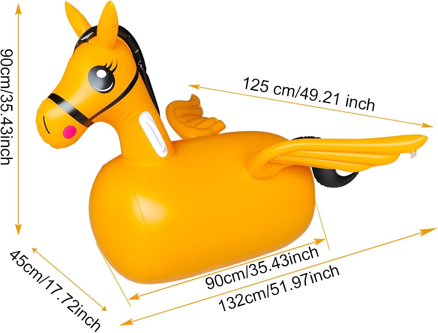 【Ideale per giochi all'aperto】: ideale per l'uso su , patii o qualsiasi superficie liscia, questo giocattolo gonfiabile da equitazione offre infinite opportunità di divertimento ed esercizio per i bambini in ambienti esterni 【Ottimo regalo】: il giocattolo a forma di cavallo gonfiabile per bambini è un ottimo regalo di compleanno e di Capodanno per bambini, ragazzi e ragazze. 【Materiale】: Realizzato in materiale PVC di qualità, questo giocattolo a forma di cavallo gonfiabile per bambini garantisce durata e sicurezza per il tuo bambino 【Dimensioni】: il giocattolo gonfiabile per bambini a forma di animale che misura 132 cm x 45 cm x 90 cm/51,97 pollici x 17,72 pollici x 35,43 pollici, offrendo ampio spazio ai bambini per sedersi comodamente mentre rimbalzano 【Portatile】: il design gonfiabile lo rende facile da installare e riporre quando non in uso, facile da trasportare