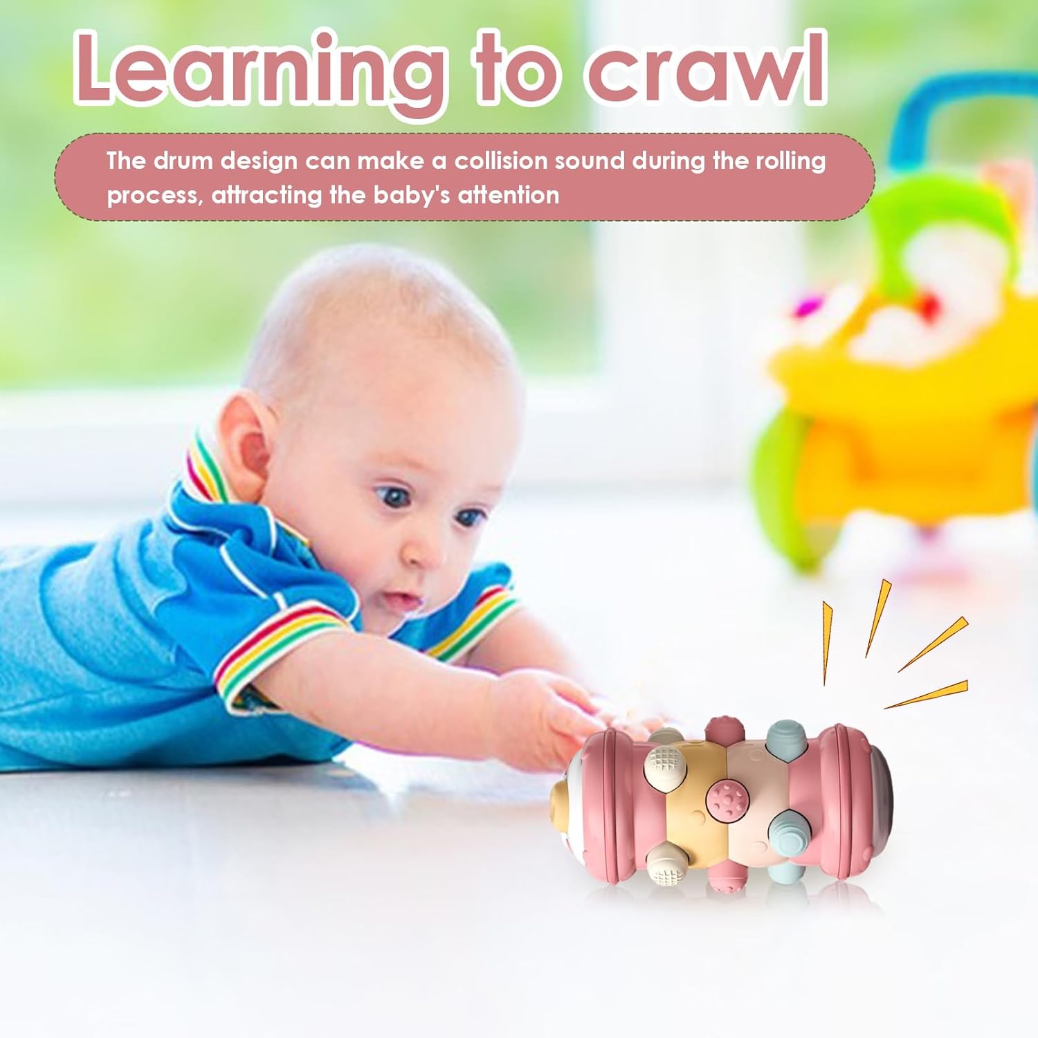 Esplorazione sensoriale: incoraggia l'esplorazione sensoriale di tuo figlio con il nostro giocattolo a rulli striscianti. Con diverse consistenze, stimola i loro sensi e migliora la loro coordinazione sensoriale, permettendo loro di sentire e imparare attraverso il gioco. Incoraggia il gioco attivo: porta i bambini a gattonare e imparare: mentre i bambini giocano con questo rullo colorato, saranno eccitati dai suoi suoni di impatto e motivati a muoversi. Il design dei rulli incoraggia la muscolare e l'equilibrio, aiutando i bambini a imparare a gattonare ed esplorare. per stimolare le giovani menti. Divertimento interattivo: il nostro giocattolo a rulli striscianti racchiude il principio della simmetria creando un gioco aperto per stimolare la curiosità. Il giocattolo consente ai bambini di realizzare l'effetto interattivo premendo su e giù, promuovendo il gioco fantasioso e la creatività mentre affinano il loro sviluppo cognitivo. Potenziatore dello sviluppo uditivo: non solo il nostro giocattolo a rulli striscianti attira l'attenzione dei bambini, ma quando viene agitato produce anche un suono chiaro e nitido grazie ai piccoli sul fondo. Ciò migliora lo sviluppo uditivo e le capacità sensoriali generali, rendendolo un'ottima aggiunta al di gioco. Design adatto ai bambini: realizzato con lucidatura fine, il nostro giocattolo a rulli striscianti garantisce un gioco sicuro per i bambini. Non preoccuparti più del disagio e gioca in sicurezza.