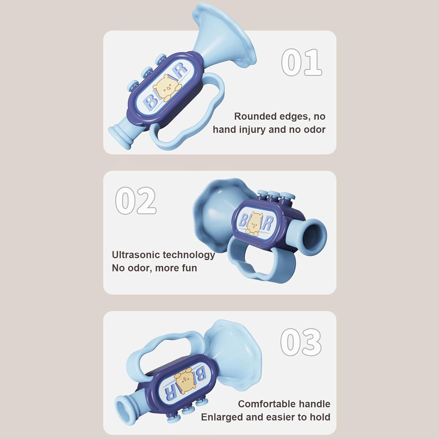 Materiale robusto: realizzata in eccellente materiale ABS, questa tromba per bambini è inodore, sicura e resistente e garantisce un uso a lungo termine senza essere facilmente danneggiata Incoraggia l'apprendimento: i bambini piccoli adoreranno creare un suono forte con un soffio delicato, migliorando le capacità uditive attraverso un'esperienza divertente e coinvolgente con colori vivaci Migliora le capacità sensoriali: esercita efficacemente la capacità polmonare e i muscoli della bocca del bambino, stimolando l'udito e il tatto, favorendo lo sviluppo generale del sistema sensoriale Crea ricordi speciali: incoraggia un buon legame tra genitori e figli e allo stesso tempo crea momenti musicali affascinanti, rafforzando i legami familiari Facile da trasportare: il design portatile di questa tromba consente un facile trasporto, consentendo ai bambini di giocare facilmente ovunque e perfetto per i viaggi a casa o all'aperto