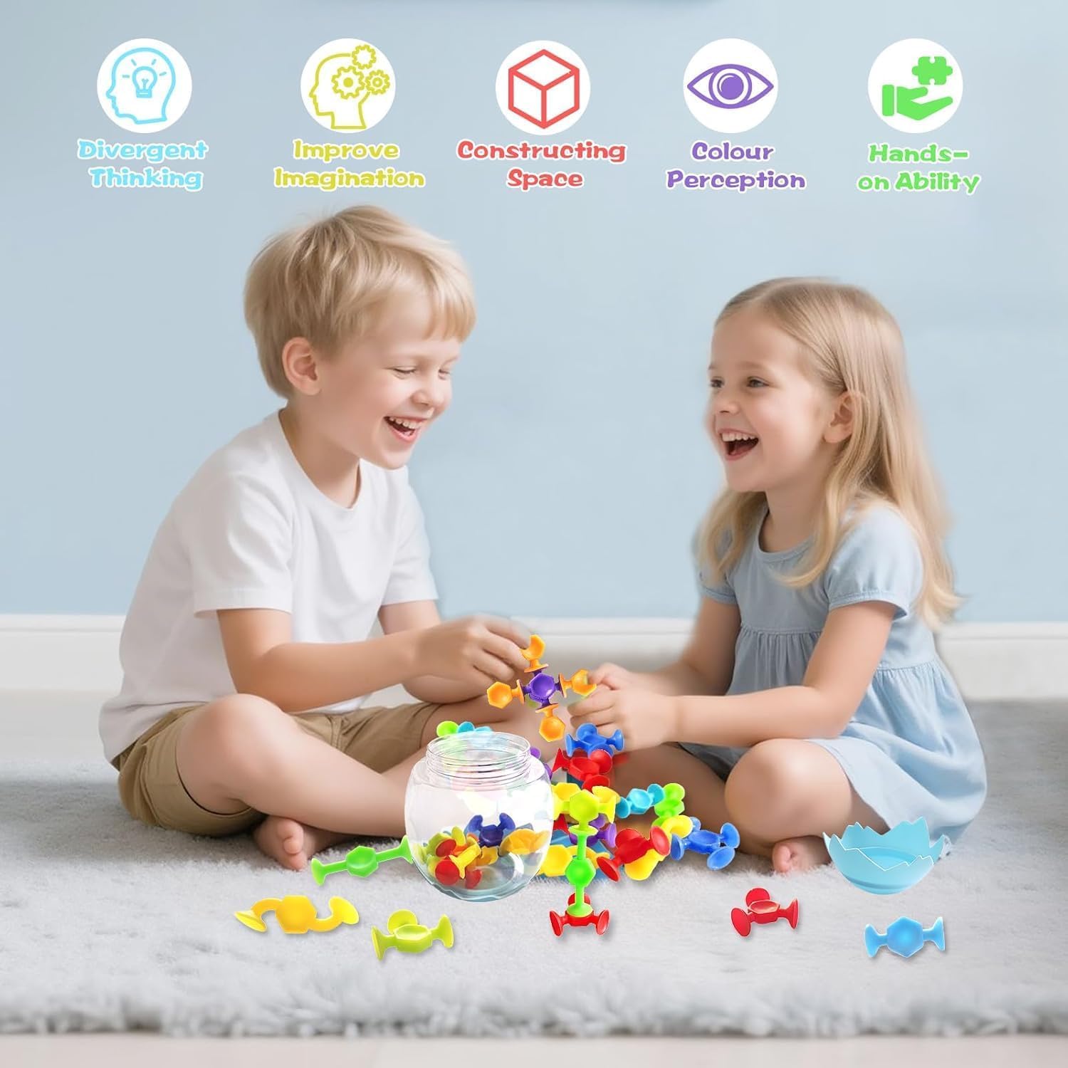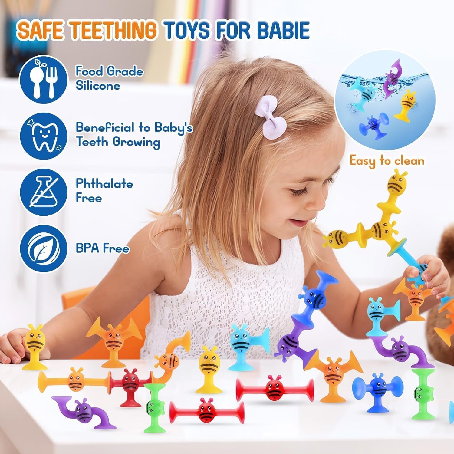 【Durevoli e morbidi】 Questi giocattoli di aspirazione in silicone sono realizzati in silicone di alta qualità. morbido ed elastico e non lascerà residui o segni sulla scrivania, sulla vasca da bagno, sulla finestra e su altre superfici. 【Simpatici giocattoli sensoriali】 La confezione contiene 38 figure a ventosa, 1 bottiglia di razzo, 1 scatola colorata. Molte forme diverse, colori vivaci e casuali. 【Stimolare la creatività】 Il giocattolo da bagno per bambini può promuovere l'immaginazione e le abilità pratiche dei bambini e aiutare a sviluppare le capacità motorie, la coordinazione occhio-mano, il pensiero spaziale e la creatività. Permette ai bambini di mettere insieme una serie di forme strane, strutture strane e creazioni interessanti, permettendo loro di divertirsi esplorando e creando. Molteplici opzioni di gioco: questo giocattolo aspirante per bambini può essere utilizzato nella vasca da bagno o in diversi ambienti come il bagno, la camera da letto, il soggiorno, la finestra o in viaggio. 【Regalo perfetto per i bambini】 Il nostro set di giocattoli da bagno con ventosa è un ottimo regalo educativo e creativo per i bambini. È perfetto per Natale, Capodanno, compleanni, Festa dei bambini, Halloween e Ringraziamento per ragazzi e ragazze dai 3 ai 10 anni.