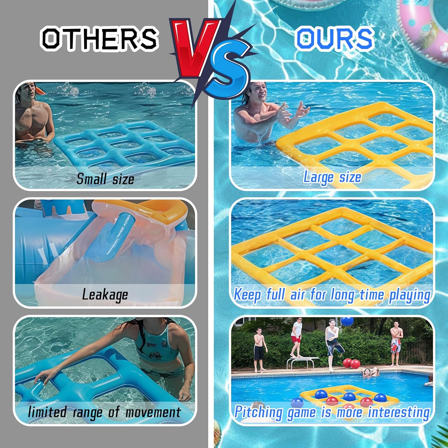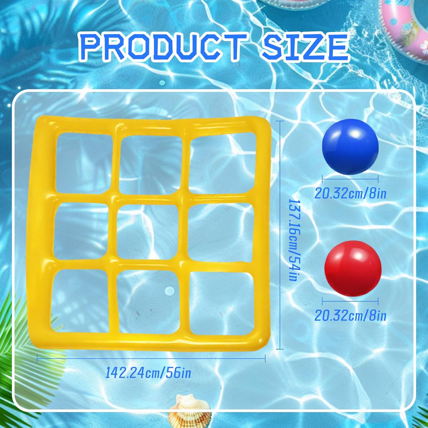 Design unico a 9 pannelli: gioca tre volte di fila con le palline pitching in PVC con un esclusivo design a 9 griglie per giochi d'acqua versatili e galleggianti stabili, perfetti per giocattoli gonfiabili in piscina e attività acquatiche familiari Realizzato in PVC resistente agli strappi e valvola di gonfiaggio rapido: questo vivace giocattolo galleggiante è stato costruito con PVC resistente alle lacrime e valvola di gonfiaggio veloce, garantisce una configurazione rapida e prestazioni durature in qualsiasi ambiente acquatico Adatto per bambini di 5 anni e adolescenti: progettato per famiglie con bambini di 5 anni e adolescenti che amano giochi interattivi in piscina, feste in backyard o giochi d'acqua creativi Portatile e salvaspazio: aumenta le riunioni in piscina, le vacanze in spiaggia o gli eventi piscina con questo galleggiante portatile e salvaspazio che innesca risate e sfide di gruppo Colori vivaci e struttura leggera: il suo colore brillante e la sua luce nella struttura del peso fanno galleggiare questa piscina essenziale per bambini per aumentare la coordinazione e l'interazione sociale durante il gioco a base d'acqua