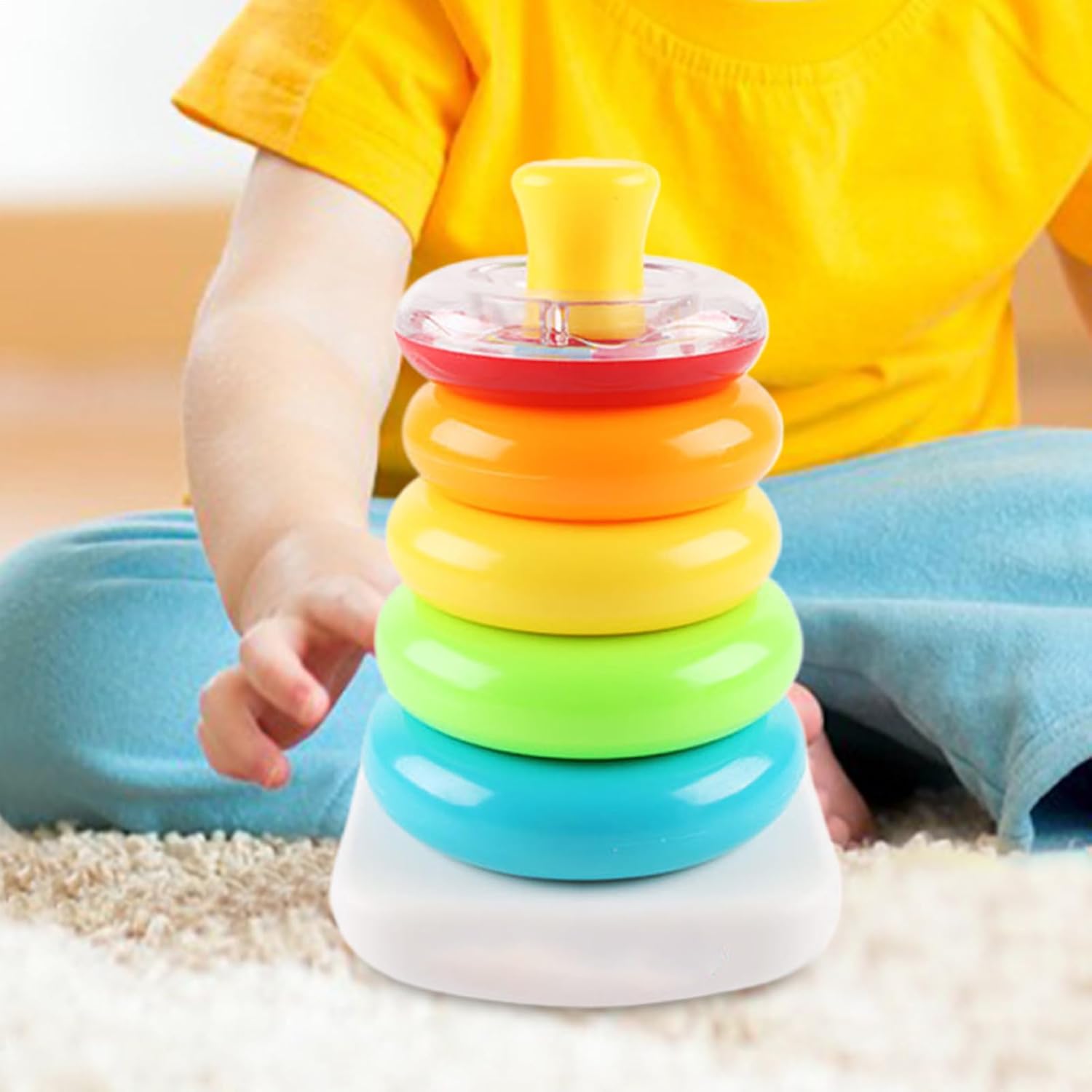 Base Stabile: Combinazione innovativa di anelli impilabili e base oscillante autobilanciante che mantiene l'equilibrio durante il gioco, con tecnologia anti-ribaltamento e ripristino automatico della posizione per divertimento continuo e sicuro Apprendimento Interattivo: Combina stimolazione visiva tramite tinte brillanti con meccanismi di gioco che esercitano la coordinazione motoria. Le attività progressive guidano il bambino nella comprensione di relazioni spaziali e principi causa-effetto. Sostegno motorio: Progettato per bimbi dai 6 mesi in su, la base pesante garantisce stabilità mentre gli anelli progettati scientificamente stimolano la coordinazione occhio-mano e il controllo muscolare durante attività di impilamento interattivo Gioco Educativo: Supporta lo sviluppo cognitivo promuovendo l'interazione genitore-figlio, combinando l'esperienza ludica degli anelli impilabili con il movimento oscillante per divertimento ripetuto Sicurezza totale: Assenza di ftalati e metalli pesanti certificata. Strato protettivo antibatterico naturale che previene il proliferare di germi durante l'esplorazione tattile