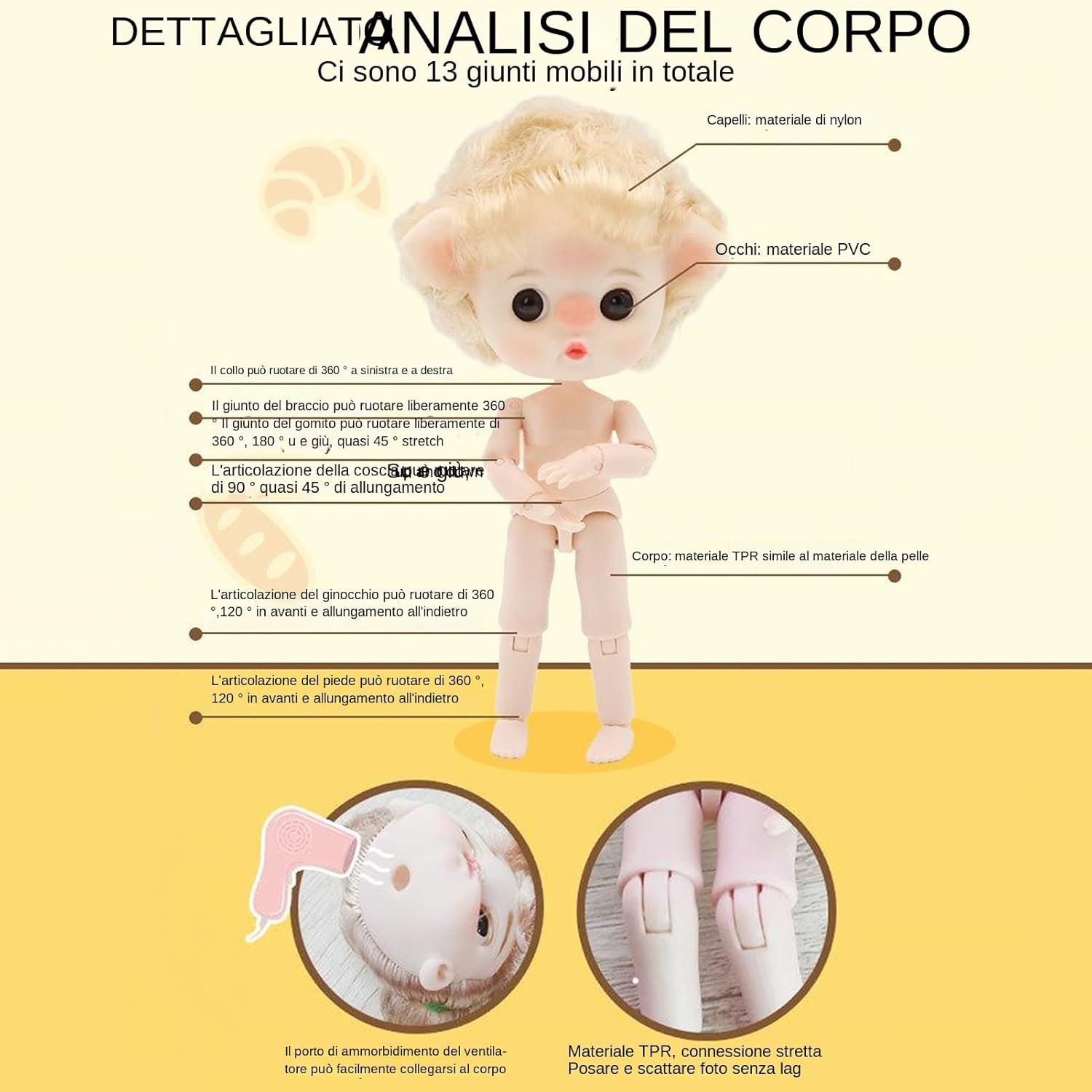 Design innovativo: caratterizzate da un design unico con un naso , le nostre bambole con snodi sferici sono un must sia per la decorazione che per il gioco. Porta istantaneamente gioia e divertimento in qualsiasi ambiente, sollevando l' e creando un'atmosfera allegra Tocco delicato: con un tocco delicato, ogni aspetto di queste bambole snodabili è realizzato con cura per garantire un'esperienza ultra realistica e divertente. Sapientemente realizzato in materiale TPR, nessun dettaglio viene trascurato per creare un'aggiunta realistica e divertente alla tua collezione Decorazione spaziale: migliora i tuoi spazi abitativi con le nostre bambole snodabili! Aggiungendo un tocco di dolcezza, queste bambole possono essere posizionate facilmente su scrivanie e tavolini, creando un fascino carismatico nella tua casa Ampiamente usato: dal gioco fantasioso agli schermi eleganti, le nostre bambole con snodi sferici offrono esperienze versatili che danno inizio alla creatività. sia per collezionisti che per bambini Creatività immediata: le nostre bambole con snodi sferici non sono solo ornamenti, sono anche giocattoli che incoraggiano il gioco fantasioso e la narrazione. Accendi la creatività di figlio con il suo nuovo compagno di giochi preferito