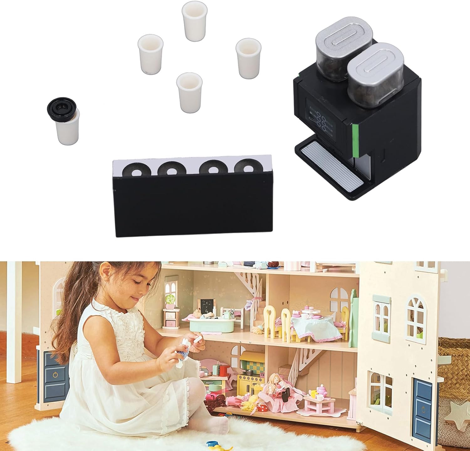 Design in miniatura simulato: sperimenta una cucina in miniatura con questa macchina da caffè finemente scolpita. Caratterizzato da un design simulato con tazze di caffè, contenitore per fagioli e bottoni, aggiunge un fascino unico alla tua casa delle bambole o alla vetrina da collezione. Dimensioni compatte: progettata per adattarsi perfettamente a qualsiasi spazio, questa macchina da caffè giocattolo da cucina è piccola e leggera. Si adatta facilmente alla casa delle bambole o alla scrivania senza occupare molto spazio. Design raffinato: aggiungi un fascino unico alla tua casa delle bambole o alla tua collezione con questa caffettiera in miniatura finemente scolpita, realizzata con attenzione ai dettagli per creare una consistenza e una forma di tazza autentiche. Materiale plastico affidabile: goditi una lunga durata con questo mini giocattolo per caffettiera realizzato in plastica affidabile. È costruito per resistere ore di gioco e offrire divertimento duraturo. Multifunzionale: questo modello di macchina da caffè in miniatura è versatile e può essere collocato nelle case delle bambole, nelle cucine o utilizzato come decorazione da scrivania. Aggiunge un tocco di fascino e realismo a qualsiasi arredamento.