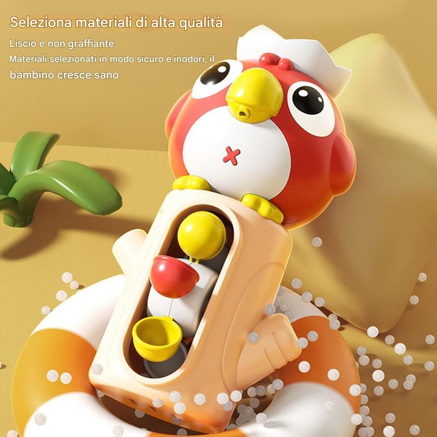 Gioco Interattivo in Vasca: Tema uccellini cartoon con forme vivaci e colori brillanti aumentano naturalmente il divertimento del bagno, attirando l'attenzione dei bambini per una maggiore gioia nel gioco Design Affidabile: Superfici levigate e di schegge unite all'ABS di qualità assicurano una costruzione sicura e antigraffio, ideale per il contatto con la pelle delicata dei bambini durante il bagnetto. Stabilità Migliorata: Le forti ventose assicurano i giocattoli a superfici lisce di vasche e piastrelle, garantendo una posizione fissa senza spostamenti Esperienza Bagno Dinamica: Stimola l'immaginazione e la creatività dei bambini grazie all'uscita rotante 'acqua che crea flussi dinamici in continuo cambiamento durante il divertente gioco nella vasca, rendendo ogni bagno un'avventura unica. Coordinazione e : Rafforza il genitore-figlio migliorando coordinazione occhio-mano e abilità motorie fini, trasformando il bagnetto in un'attività educativa con giocattoli da bagno coinvolgenti