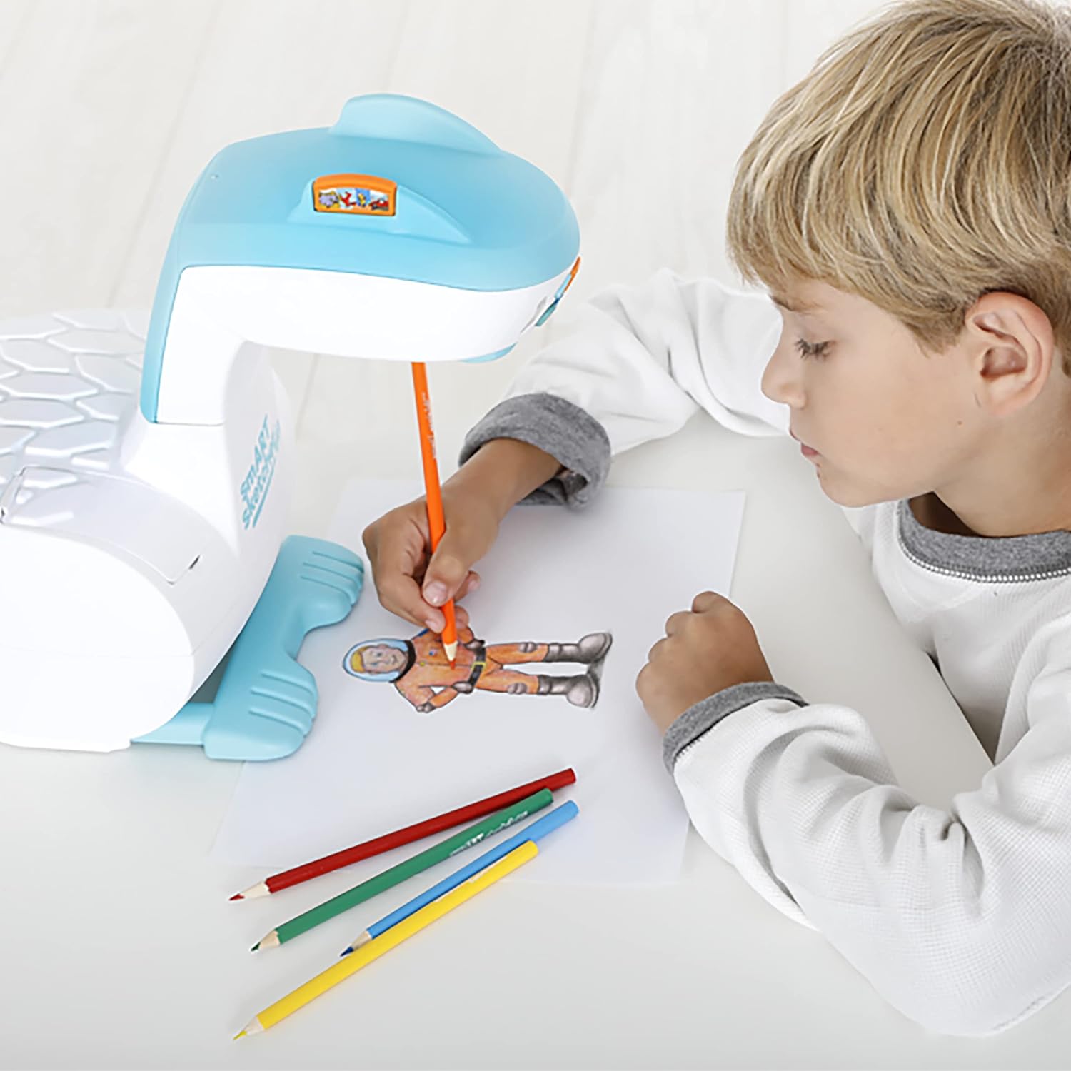 Proiettore Smart Sketcher V2 Disegna e impara! Include alimentatore o cavo USB. Più di 60 attività intelligenti. Suoni interattivi ed effetti speciali. Carica le tue foto su Smart Sketch. Colore multicolore In caso di problemi, seguire i passaggi seguenti (secondo le raccomandazioni del produttore) 1. Spegnere il proiettore./ 2. Rimuovere la scheda SD dal proiettore./ 3. Accendere il proiettore, attendere finché non si riceve un messaggio di inserimento della scheda/ 4. Inserire delicatamente la scheda SD nella testa del proiettore./ 5. Non utilizzare le schede in altre unità.