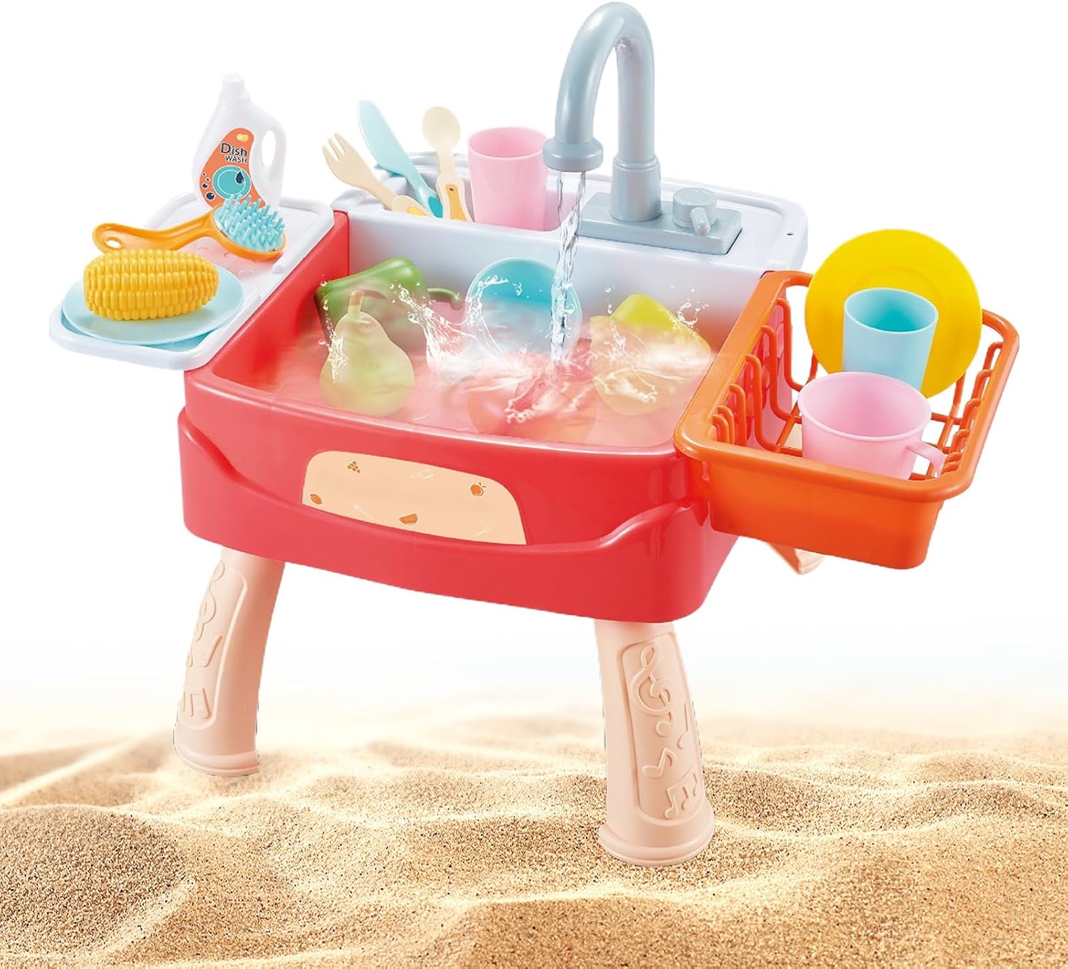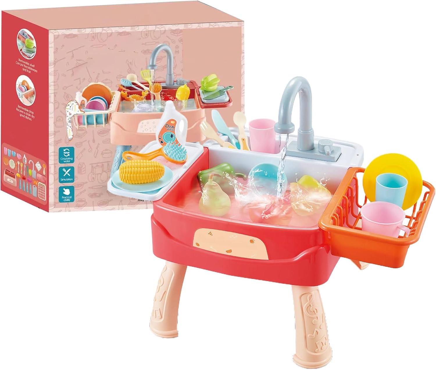 Sicurezza Prolungata: Progettato con bordi arrotondati lisci e struttura resistente ad assorbimento urti per uso prolungato, garantendo massima sicurezza in ogni dettaglio costruttivo senza spigoli pericolosi durante il gioco attivo Giochi di sviluppo: Stimola le abilità motorie simulando routine quotidiane, con componenti educativi che incoraggiano il pensiero logico tramite funzioni interattive a batteria per esperienze di apprendimento coinvolgente Rafforzamento Familiare:Consolida le relazioni familiari con design dedicato al gioco cooperativo, promuove l'espressione verbale e favorisce interazioni attive genitore-bambino tramite scenari di ruolo coinvolgenti. Esperienza Lavello Realistica: elettrico di ricircolo acqua con controllo a pulsante simula un vero rubinetto da cucina migliora la coordinazione occhio-mano attraverso attività di gioco con acqua coinvolgenti per bambini Set Pratico: La collezione con scolapiatti e spazzola favorisce esperienze di gioco realistiche, combinando elementi staccabili per una manutenzione semplice e intuitiva, consentendo ai bambini di esplorare liberamente attività casalinghe fantasiose