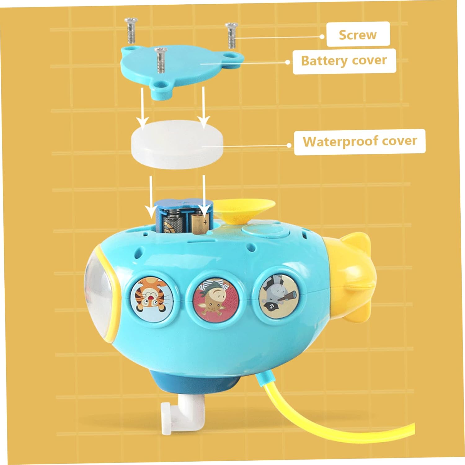 Design carino e funzionalità divertenti: con la sua adorabile forma sottomarina e la funzione di spruzzo d'acqua, questo giocattolo da vasca è carino e divertente per i bambini..I bambini possono osservare come la pompa sul fondo del sottomarino aspira l'acqua e la spruzza attraverso il soffione della doccia in alto..Il sottomarino è potente e i piccoli fori del soffione sono distribuiti uniformemente e l'acqua verrà spruzzata uniformemente Ventosa sicura: questo giocattolo per baby shower non può essere utilizzato solo come giocattolo galleggiante, ma è anche dotato di una ventosa morbida per fissarlo saldamente alla vasca da bagno..La ventosa assicura che il giocattolo rimanga al suo posto, anche durante il gioco attivo..Il tubo dalle prestazioni eccellenti e il tubo del soffione possono essere regolati a 360°, non facili da danneggiare. Facile da usare: utilizzare questo giocattolo da doccia è semplice..Basta inserire 4 batterie AAA (NON INCLUSE) nei giocattoli acquatici, premere il periscopio del sottomarino, quindi posizionare il sottomarino in acqua per iniziare a giocare. Design adatto ai bambini: questo giocattolo è progettato per neonati e bambini piccoli..Questo giocattolo per il bagnetto è realizzato in plastica ABS di qualità, priva di ingredienti dannosi BPA, e la sua superficie è liscia con bordi arrotondati per garantire un gioco sicuro..Il giocattolo da bagno con soffione doccia trasforma il momento del bagnetto del bambino in un felice divertimento..Con questo creativo e adorabile giocattolo sottomarino, è possibile sostituire il tradizionale soffione Design impermeabile: questo irrigatore giocattolo da bagno sottomarino presenta un'eccellente impermeabilità per proteggere le batterie dai danni causati dall'acqua..Un ulteriore anello di tenuta impermeabile è stato aggiunto al vano batteria per migliorarne le capacità di impermeabilità..Il giocattolo da bagno elettrico sottomarino con irrigatore è anche facile da pulire, rendendolo una scelta conveniente per i genitori.