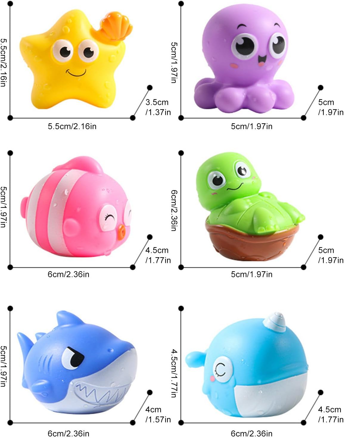 Un senso di unicità: con stelle marine, delfini, squali, tartarughe e polpi in colori vivaci per coltivare il senso di colore dei bambini e stimolare la loro immaginazione e di esplorare Migliora il divertimento del bagno: con la sua leggera luce morbida, i nostri giocattoli da bagno migliorano l'atmosfera, attirando i bambini senza sforzo e rendendo il del bagno più felice e più rilassato Sicuro e durata: migliora la presa offrendo un design senza bordo e senza bordi con materiale in PVC di alta qualità, rendendolo comodo e sicuro per le mani del bambino Ampia gamma di applicazioni: aggiorna il gioco di tuo figlio con i nostri giocattoli da bagno . per il bagno, il nuoto e i giochi d'acqua, offrendo più intrattenimento e un delizioso compagno per i bambini Intrattenimento interattivo per il bagno: fatti coinvolgere semplicemente toccando la base o immergendosi in acqua per attivare le luci elettrizzanti, aggiungendo un tocco stravagante alla routine di bagno di tuo figlio
