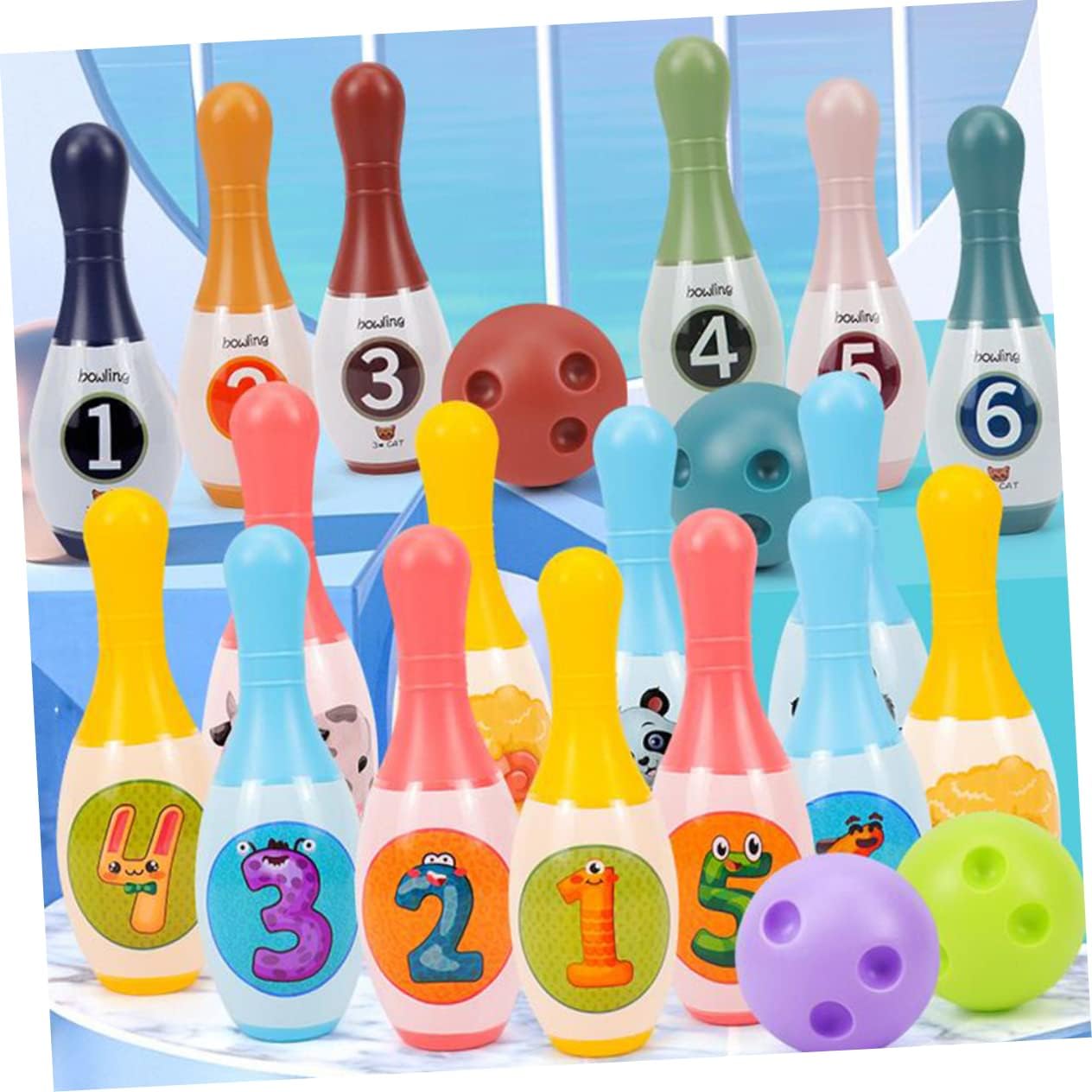 Palle da bowling per: questo set da bowling è meraviglioso e impressionante per i tuoi piccoli o i tuoi amici, e saranno felici quando lo riceverai, Bowling per bowling in miniatura: il gioco del bowling aiuta anche i bambini a sviluppare la coordinazione occhio-mano e la coordinazione dell'equilibrio. È un gioco sportivo per il bowling per i più piccoli: questo set da bowling per interni è molto resistente e viene utilizzato a lungo. Mini Bowling Bowling: puoi trascorrere del tempo giocando ai videogiochi e trascorrere del tempo con attività interattive, usi questo set da bowling, giocattolo sportivo Giocattoli per bambini: design di numeri e colori, i bambini possono imparare a contare e riconoscere numeri diversi mentre giocano a bowling, giocattolo per bambini