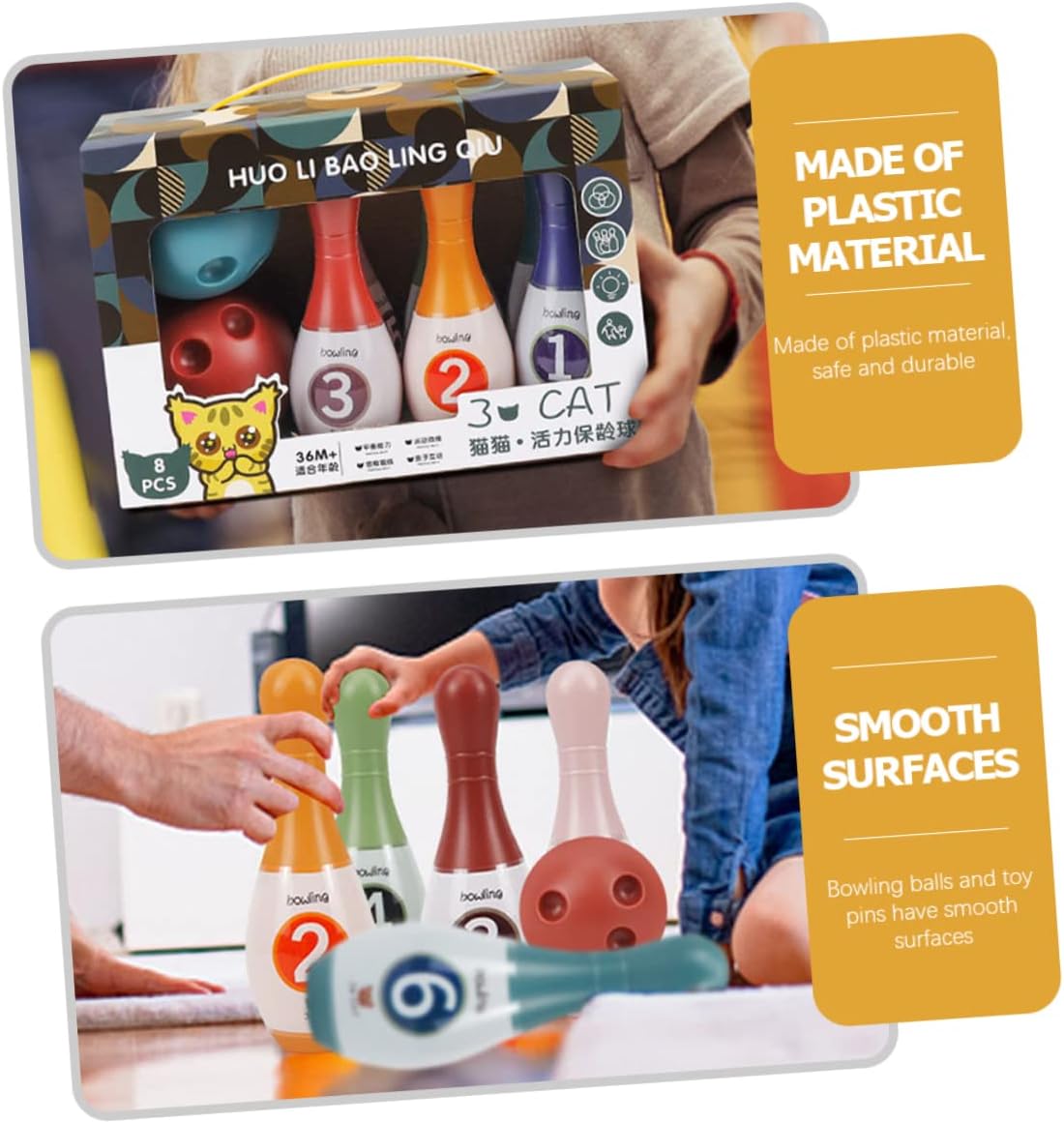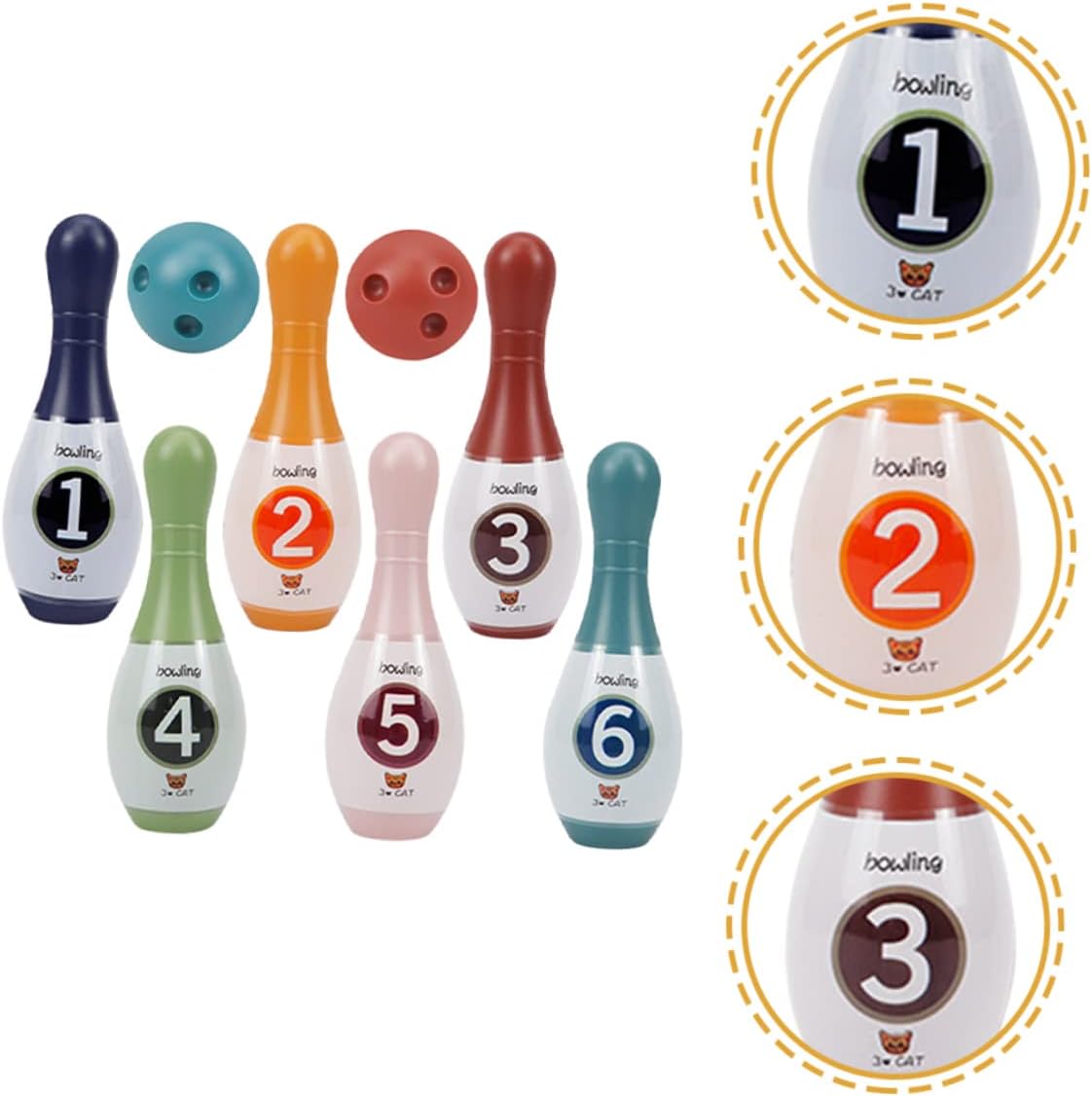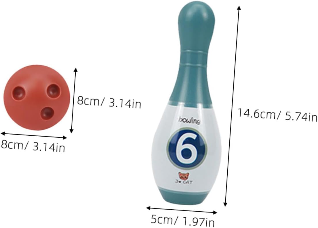 | enthaltene Komponenten | 6 x Bowling Pin Spielzeug;2 x Bowlingkugelspielzeug |