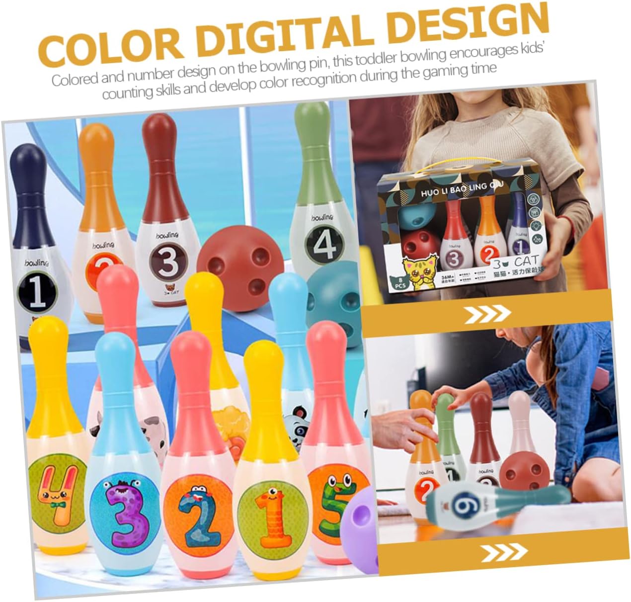 Giocattolo per bambini: il set da bowling è leggero, i bambini possono facilmente portarlo fuori, nel parco, a scuola o in altri campi da gioco, mini bowling. Bowling giocattolo per bambini piccoli: uno strumento per promuovere la capacità di osservazione e le abilità pratiche dei bambini e aiutarli anche a divertirsi mentre giocano. Giocattoli sportivi per bambini piccoli: questo set di giocattoli da bowling consente ai bambini di imparare le regole del bowling e allenare le proprie abilità sportive, bowling in miniatura