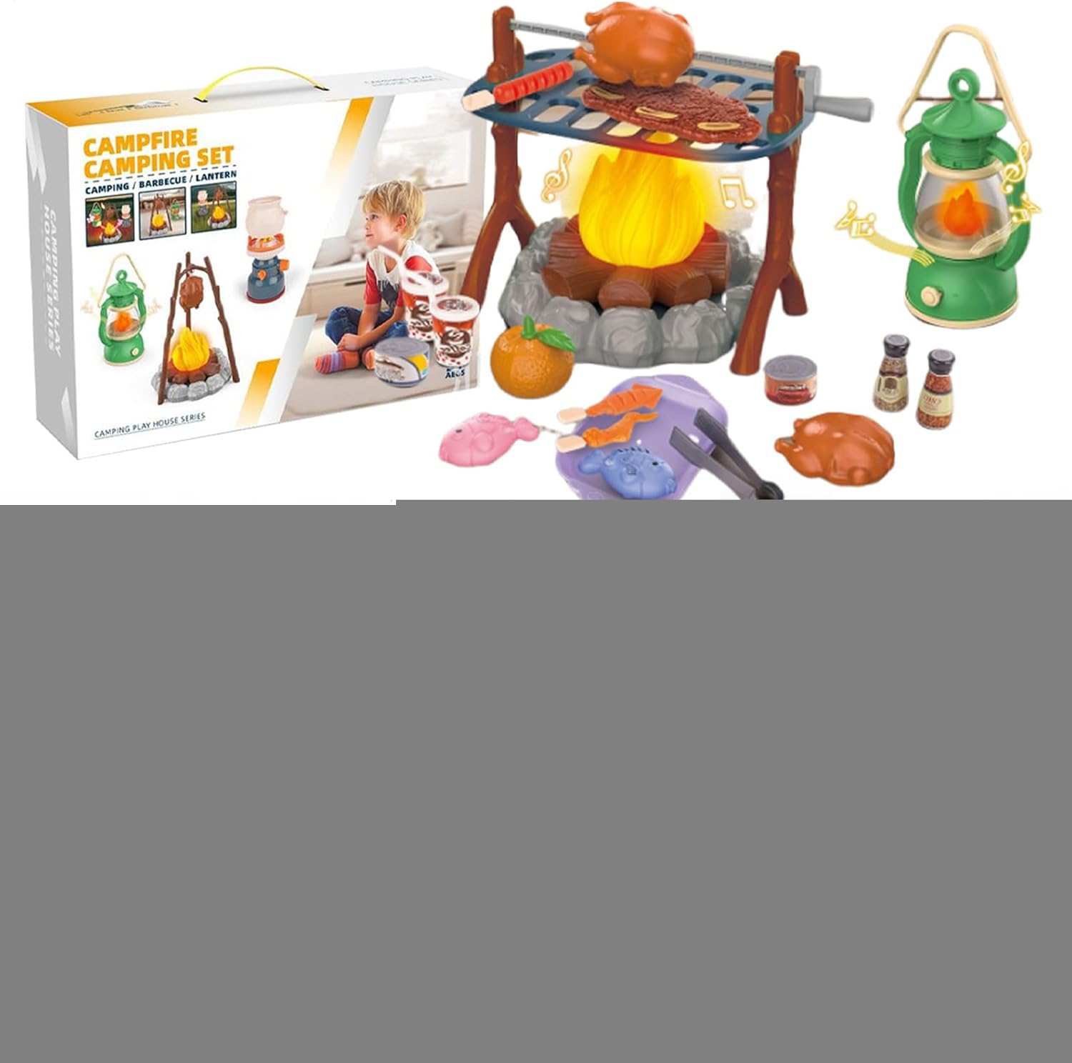 Fantastico divertimento all'aria aperta: stupirete il vostro bambino con il nostro set di giocattoli da campeggio e offrendogli maggiori possibilità di gioco fantasioso all'aperto. Con falò scoppiettanti, lanterne accese e tutti gli accessori necessari, l'avventura non finisce mai. Tempo di gioco divertente: vivi l'avventura di campeggio ideale con questo set di giocattoli per bambini. La confezione include bastoncini per arrostire in modo sicuro i bambini su un "" marshmallow, pesce e biscotti. Questo set garantisce un sacco di divertimento. Campo di applicazione: il nostro set di giocattoli da campeggio per bambini è perfetto per avventure indoor e outdoor e stimola il gioco più fantasioso e stimola la creatività dei bambini dai 3 ai 6 anni. Perfetto da regalare: mostra l'immaginazione del tuo bambino con questo set di giocattoli da campeggio; è il regalo perfetto per compleanni e vacanze, arricchendo con avventure compleanni e festività. Incoraggia il gioco avventuroso: questo set di giocattoli da campeggio per bambini con il suo design unico non solo incarna lo spirito dell'avventura, ma porta anche il divertimento del campeggio direttamente nella tua casa e risveglia creatività e immaginazione in ogni bambino.