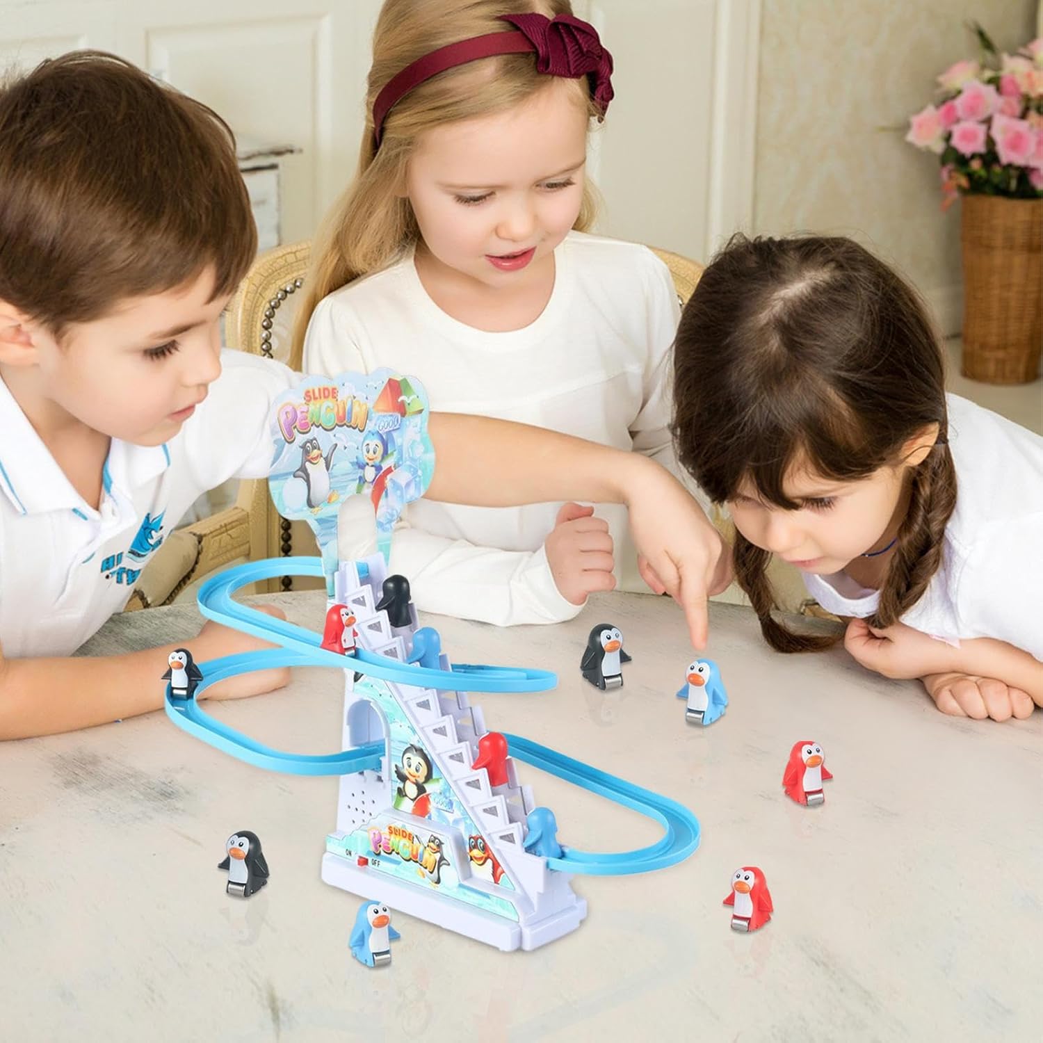 Esperienza interattiva emozionante: emozionante giocattolo da corsa con che garantisce ore di divertimento per e bambini, incoraggiando risate e partecipazione con ogni gioco emozionante slancio alle tue feste: aggiungi entusiasmo alle tue feste con la musica energica e le luci a LED del Penguin Slide Toy. Mentre i pinguini scivolano giù, la musica vivace e i LED lampeggianti un'atmosfera vibrante che è un'aggiunta perfetta a qualsiasi celebrazione. Sperimenta più divertimento e crea un'atmosfera festosa che manterrà tutti impegnati e divertiti Incoraggia il gioco attivo: guarda come i bambini migliorano la coordinazione occhio-mano, delizioso il giocattolo della pista da corsa del che incoraggia il gioco attivo e l'interazione con amici o familiari Configurazione semplice: il giocattolo scorrevole Penguin vanta un semplice design a batteria facile da installare e le batterie possono essere facilmente sostituite per un di gioco prolungato. Goditi un facile assemblaggio a casa o all'aperto e assicurati più divertimento ed eccitazione che iniziano immediatamente Outlet creativo: questo giocattolo con scivolo a forma di , con la sua pista da corsa colorata e le coinvolgenti funzionalità interattive, è un regalo per la stagione invernale. Delizia i bambini di tutte le età, è un modo per aggiungere allegria festosa e divertimento ad ogni occasione