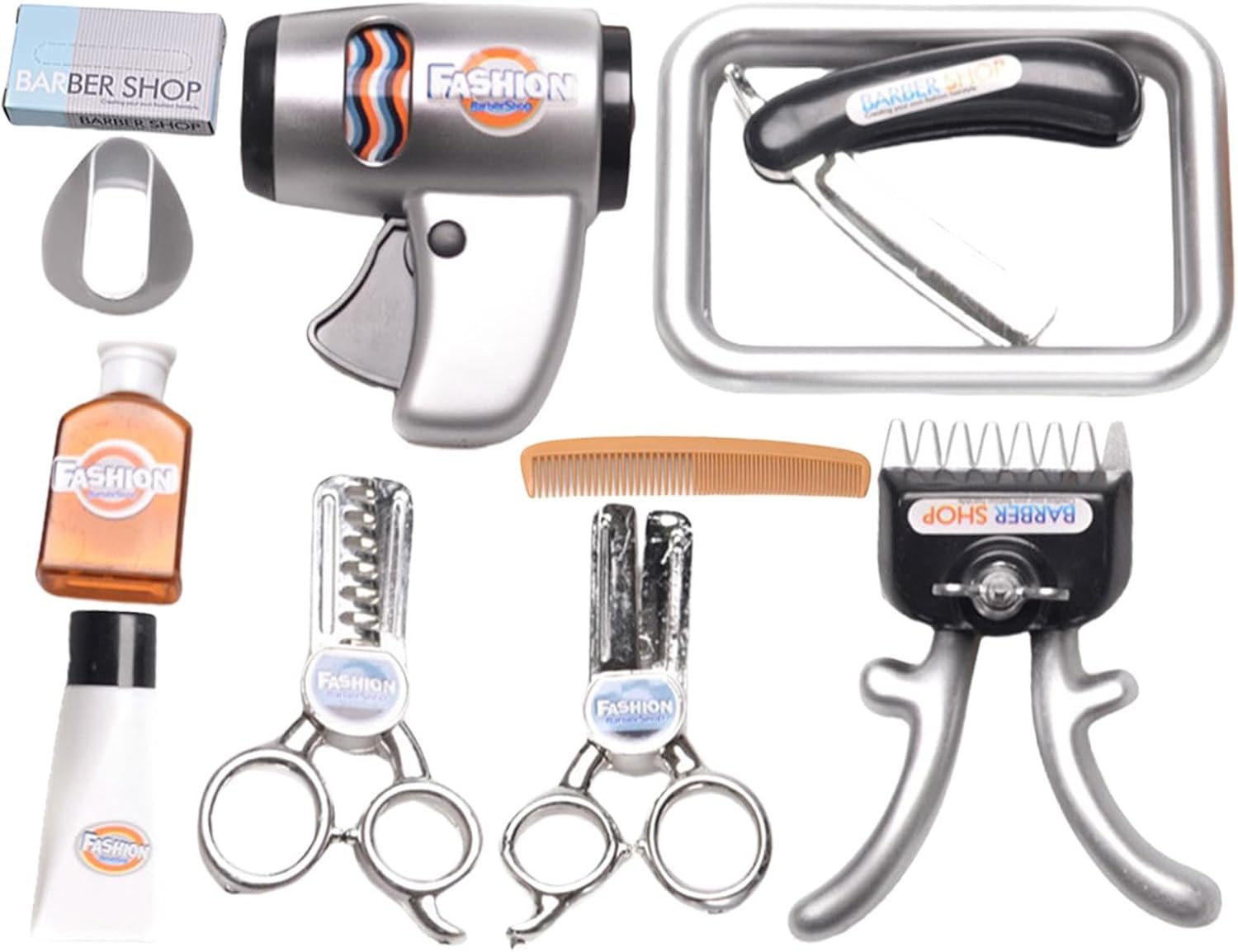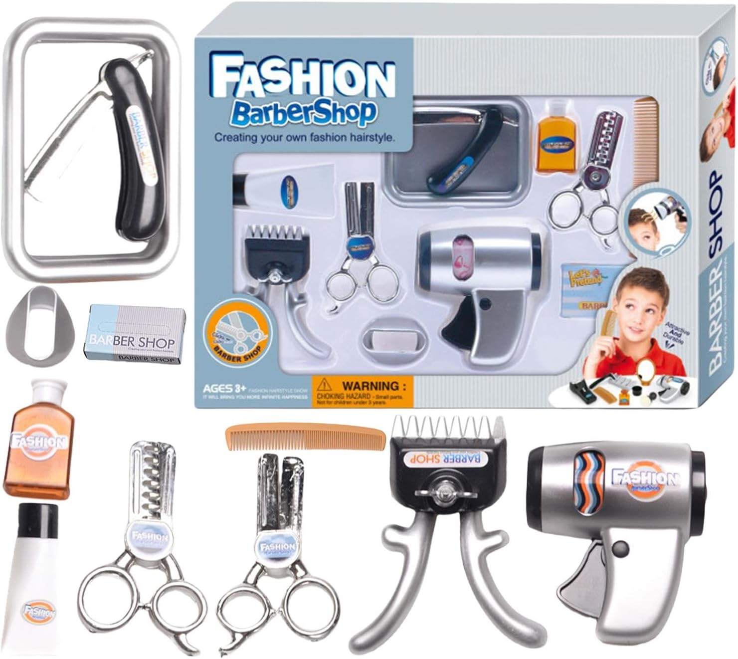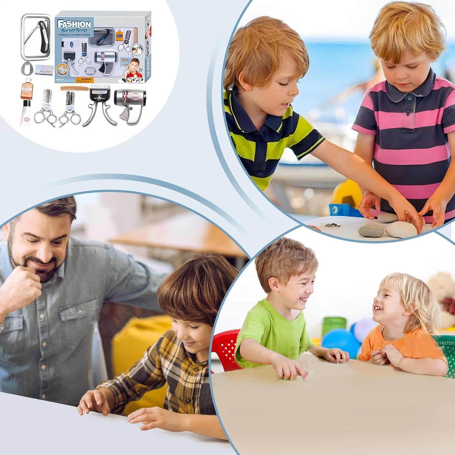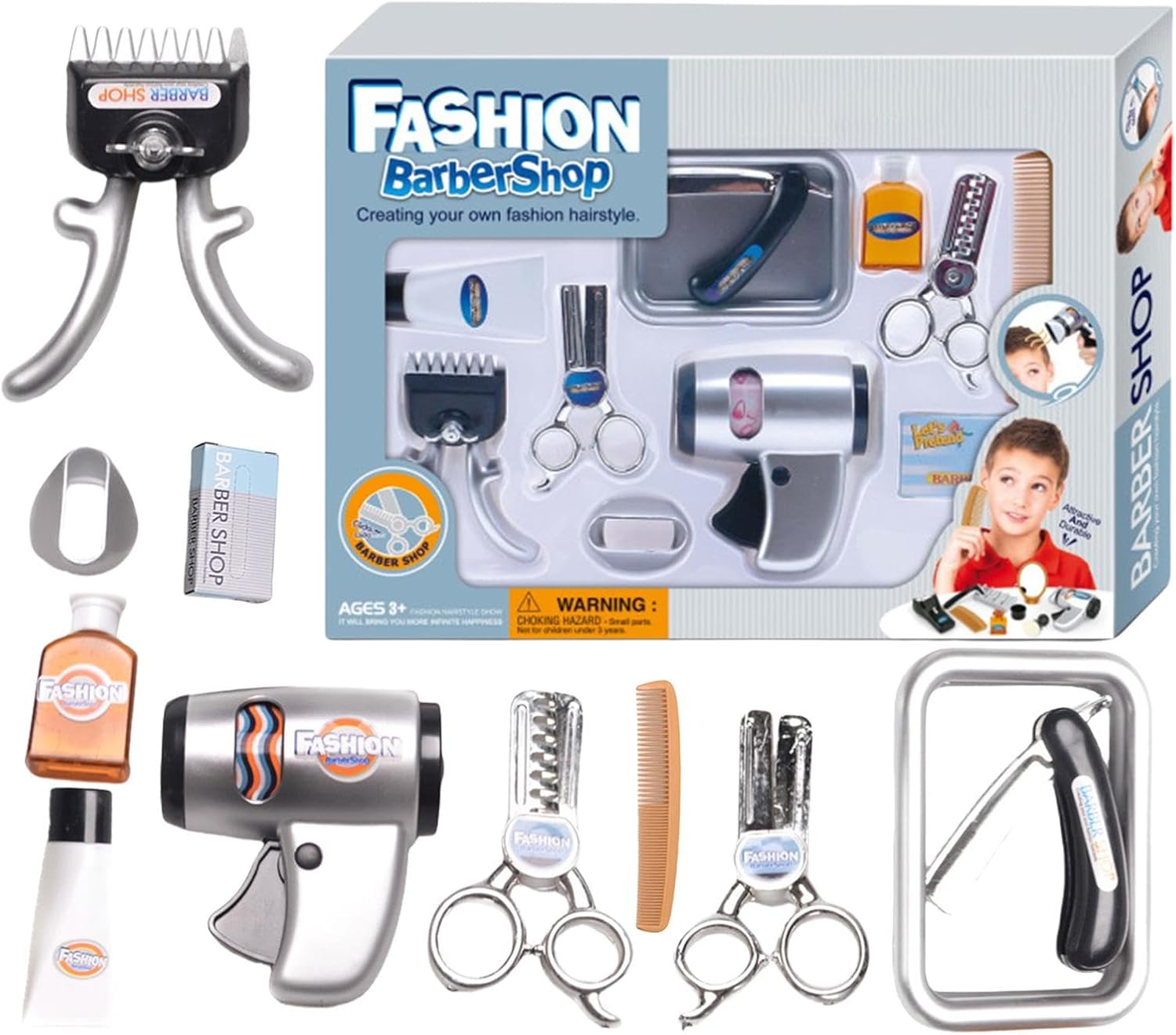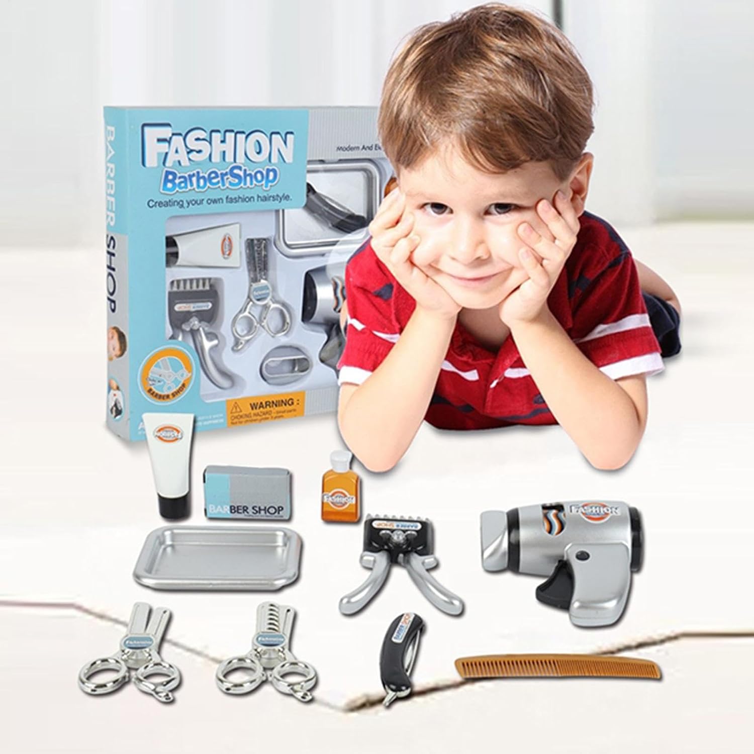 Incoraggia le abilità creative: il set da gioco per parrucchieri per bambini dal design unico è lo strumento perfetto per migliorare le capacità di styling dei capelli di tuo figlio. Stimola la creatività e l'immaginazione e migliora le capacità motorie mentre i bambini scoprono giocosamente le basi dell'acconciatura. Incoraggia la risoluzione dei problemi: il set da gioco Kids Barber Shop è progettato per promuovere le capacità di risoluzione dei problemi dei bambini attraverso il gioco interattivo. Con la varietà di strumenti e accessori, i bambini imparano a elaborare strategie e a pensare in modo critico, migliorando al contempo le proprie capacità comunicative e digitali. L'apprendimento piacevole con l'interazione sociale è garantito.,Divertimento educativo: il nostro set da gioco per bambini da parrucchiere ha un design robusto e sicuro, realizzato in materiale ABS di alta qualità per resistere all'usura. Con il giocattolo da salone resistente alla deformazione e allo sbiadimento, i più piccoli possono vivere ore di divertimento e giochi di ruolo educativi. Scelta ideale: incoraggia la creatività di tuo figlio con il coinvolgente set da gioco Kids Barber Shop che stimola l'immaginazione e le risate sia nei ragazzi che nelle ragazze. Questo set è perfetto per un compleanno, Natale o Capodanno ed è un regalo perfetto che ispira amore e cura per il gioco di ruolo. Ampiamente usato: questo set da gioco per bambini da parrucchiere è lo strumento perfetto per stimolare lo sviluppo della fantasia mentre i bambini imparano e si divertono. Con versatili opzioni di gioco di ruolo e un'ampia gamma di usi, è l'ideale per vacanze creative e attività in classe