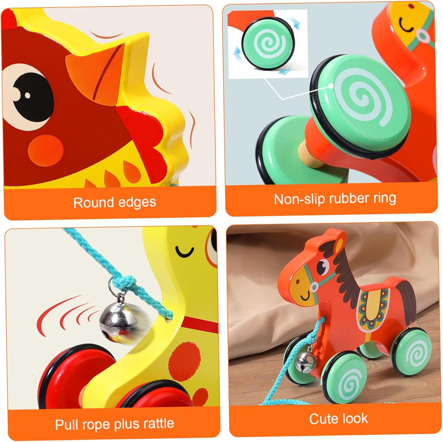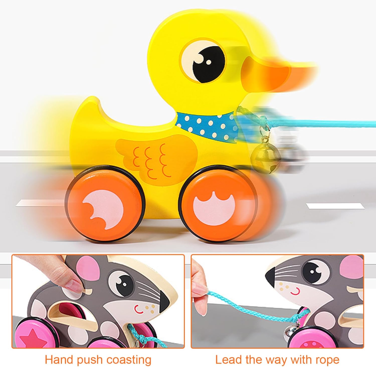 Promuove le abilità di sviluppo: questo giocattolo interattivo da tirare per bambini è progettato per aiutare a sviluppare abilità essenziali come mobilità, equilibrio e coordinazione occhio-mano..Incoraggiare i bambini a trascinare il giocattolo favorisce il movimento e sostiene lo sviluppo fisico nei bambini piccoli. Ruote lisce e antiscivolo: le ruote antiscivolo forniscono un'eccellente trazione su varie superfici, consentendo ai bambini di tirare la loro papera senza scivolare o versare liquidi..Questa caratteristica migliora la stabilità e incoraggia il movimento sicuro mentre esplora l'ambiente circostante. Perfetto per i più piccoli: ideale per i bambini di età compresa tra 1 e 3 anni, questo giocattolo a forma di anatra in legno è un pensiero per compleanni, vacanze o occasioni speciali..È un giocattolo senza tempo che non solo intrattiene ma supporta anche importanti traguardi dello sviluppo. Gioco interattivo coinvolgente: il nostro giocattolo da tirare per bambini in legno presenta un design delizioso che affascina i più piccoli con il suo aspetto affascinante..La campana allegata aggiunge una funzione uditiva, rendendo il gioco più coinvolgente e divertente per il tuo piccolo! Materiali sicuri e affidabili: realizzato in legno atossico, questo giocattolo a forma di anatra garantisce un'esperienza di gioco sicura per il tuo bambino..La sua struttura robusta garantisce che possa resistere ai rigori del gioco quotidiano, rendendolo un favorito di lunga durata.