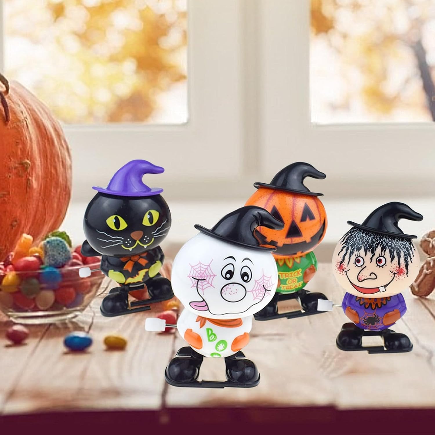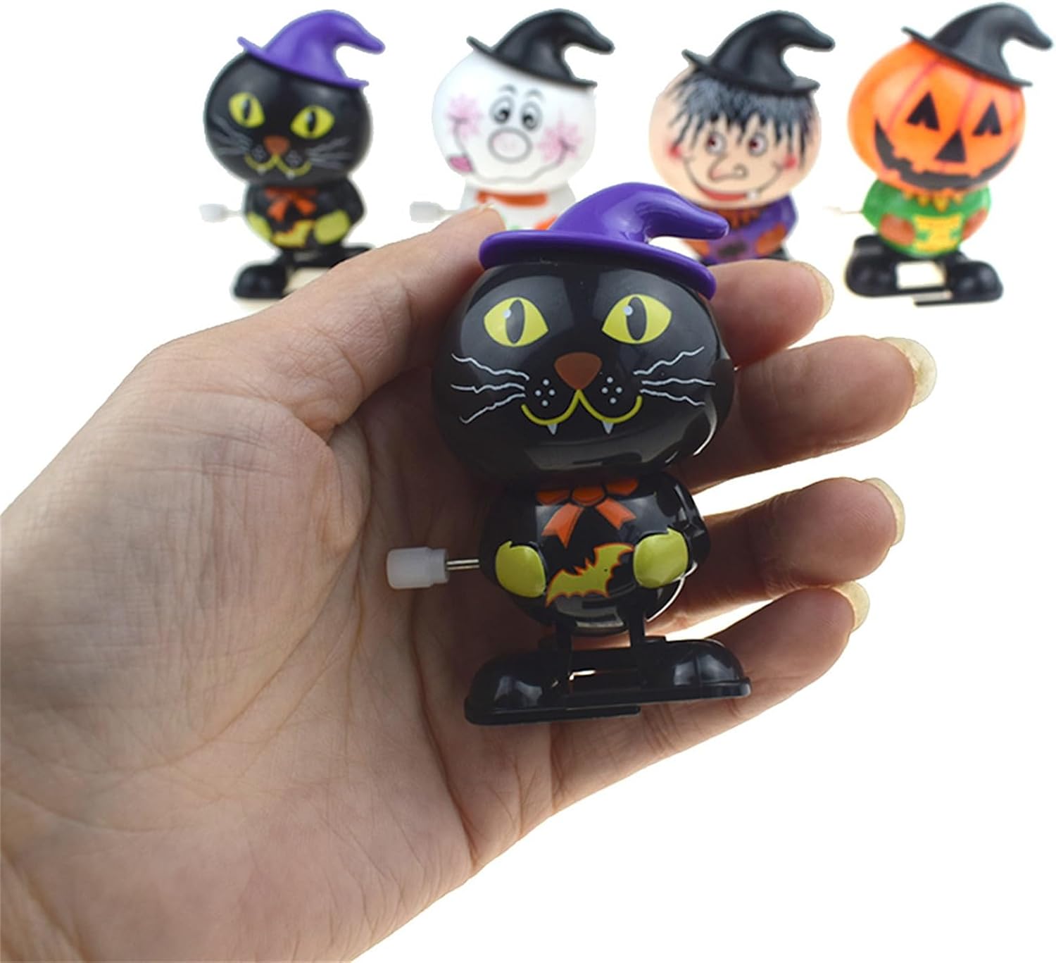 Attraente e animato: questo giocattolo con movimento per Halloween è un ottimo modo per aggiungere divertimento spaventoso al tempo di gioco dei tuoi bambini. Presenta espressioni facciali terrificanti, colori attraenti e cappelli carini che lo distinguono dagli altri giocattoli. Per farlo saltare automaticamente, basta ruotare il movimento e guardarlo saltare in giro. Divertimento a risparmio energetico: non sono necessarie batterie per far funzionare questo giocattolo di Halloween. L'azionamento viene effettuato tramite molle metalliche, che vengono tese per rotazione. Una volta caricato, può muoversi o saltare in modo indipendente, creando un effetto spaventoso e divertente. Questo giocattolo è facile da giocare e rispettoso dell'ambiente. Durevole e squisito: abbellisci le tue feste di Halloween con il nostro orologio giocattolo che si distingue per la sua resistenza e durata superiori. Realizzato in materiali ABS sicuri, questo giocattolo presenta dettagli squisiti. È resistente all'usura e l'eccellente lavorazione garantisce una maggiore durata, consentendo ai bambini di divertirsi di più per ore. Regalo meraviglioso: rendi la festa di Halloween ancora più divertente ed emozionante con i nostri giocattoli a orologeria. Un regalo perfetto per compleanni, Natale e Capodanno. I bambini adoreranno questo giocattolo di Halloween, il che lo rende una ricompensa scolastica ideale e la loro sorpresa preferita di Halloween. Sperimenta la magia: voglia di divertirti questo Halloween? Ottieni questo pratico set di giocattoli con movimento composto da una strega, una zucca, un gatto nero e uno. Ogni giocattolo si sposta in avanti dopo il sollevamento. Condividilo con la famiglia e gli amici e aggiungi eccitazione alle tue celebrazioni!