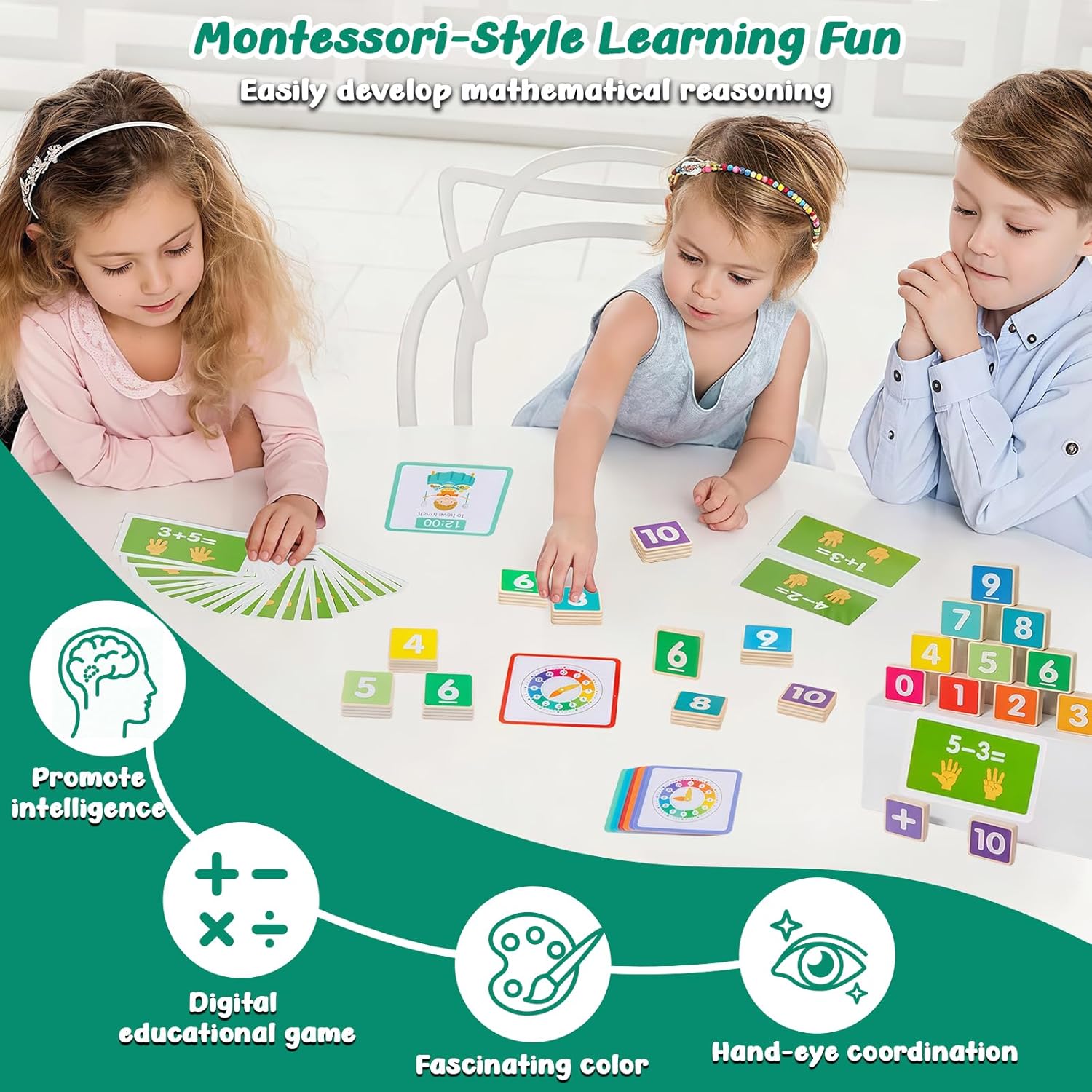 【Divertenti Giocattoli Matematici】Questo giocattolo in legno rende l'apprendimento dei numeri, dell'addizione e della sottrazione un'esperienza interattiva e divertente. Colori vivaci e simboli matematici aiutano i bambini a riconoscere e classificare i colori, stimolando la curiosità e l'entusiasmo per i numeri. Perfetto per i bambini piccoli e in età prescolare per sviluppare le competenze matematiche di base attraverso il gioco. 【Sicuro e di Alta Qualità】Giocattoli Matematici Montessori realizzato in legno di alta qualità con bordi lisci e arrotondati e vernici atossiche e adatte ai bambini. Ideale per il gioco attivo e sicuro per le manine dei bambini piccoli. Questo giocattolo in legno promuove la comprensione matematica di base in modo giocoso: può essere utilizzato sia all'interno che all'esterno come gioco educativo all'aperto per bambini. 【Giocattoli Montessori Migliorati】Presenta una lavagna interattiva per contare con le dita e lancette in feltro, blocchi numerici, operatori aritmetici e un orologio interattivo, insegnando contemporaneamente il concetto di tempo con la lancetta. Con blocchi temporali e blocchi comportamentali, i bambini possono pianificare situazioni di vita e quindi sviluppare il pensiero logico e le capacità di gestione del tempo attraverso il gioco. 【Strumento Perfetto per L'interazione Genitore-Figlio】Questo giocattoli educativi montessori per bambini invita a vivere momenti preziosi con i genitori: promuove lo sviluppo del bambino attraverso il gioco condiviso, il conteggio e la risoluzione di problemi. Perfetto per i bambini in età prescolare che desiderano imparare giocando con la famiglia o gli amici e sviluppare l'amore per i numeri. 【Regalo Ideale per i Bambini】Giocattoli matematica in legno perfetto per la scuola, l'istruzione parentale o come regalo di compleanno o di Natale per ispirare l'entusiasmo per la matematica. Che sia a casa, all'asilo o a scuola, questo giocattolo dal valore educativo aumenta la motivazione e l'entusiasmo per i numeri, l'aritmetica e la risoluzione di problemi.