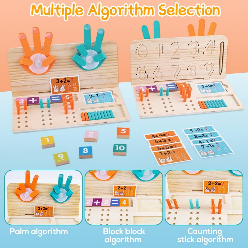 Apprendimento bifacciale: questo giocattolo Montessori include due lavagne, una per imparare addizione e sottrazione, con carte, bastoncini e mattoncini. L'altra è bifacciale, con due mani sul davanti in modo che i bambini possano contare con le dita, e il retro per copiare i numeri da 0 a 9. Design multisensoriale: i giocattoli Montessori con blocchi colorati in legno, flashcard colorate e puzzle mobili promuovono il riconoscimento dei numeri, le capacità di problem solving e il pensiero logico, migliorando anche la coordinazione occhio-mano. Giocattolo divertente per l'apprendimento della matematica: questo giocattolo Montessori dal design curato trasforma l'apprendimento dei numeri, dell'addizione e della sottrazione in un'avventura emozionante. Ideale per bambini piccoli e in età prescolare per scoprire i fondamenti della matematica in modo giocoso. Materiale: Questo giocattolo Montessori è realizzato in legno con bordi lisci, che lo rendono resistente e garantiscono divertimento e apprendimento duraturi per i più piccoli. Regalo educativo: Questo giocattolo Montessori è adatto a bambini dai 4 ai 6 anni ed è un regalo eccellente per compleanni, festività o per i risultati scolastici. I giocattoli Montessori per l'apprendimento della matematica promuovono la fiducia nell'apprendimento precoce della matematica e ispirano entusiasmo per la matematica.
