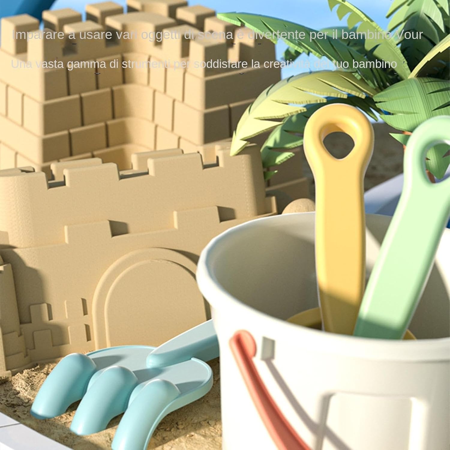 Promuove lo sviluppo cognitivo: stimola la creatività dei bambini e le capacità di risoluzione dei problemi impegnandosi in attività pratiche di sabbia, incoraggiandoli a pensare fuori dagli schemi ed esplorare nuove idee collettivamente Struttura robusta: realizzato con materiali ABS di alta qualità e rispettosi del'ambiente, questo set di sabbia e pala promuove il gioco sostenibile garantendo al contempo la durata e la sicurezza Incoraggia l'apprendimento: migliorare le capacità e la creatività della risoluzione dei problemi dei bambini migliorando il coordinamento degli occhi e la flessibilità della mano attraverso attività auto-dirette, promuovendo la loro crescita e sviluppo Ampiamente usato: nel cortile, in piscina o in un viaggio in campeggio, questo set di sabbia e pala promette più divertimento in gioco per tutte le età Presente adatto: delizia i bambini nei compleanni e occasioni speciali come il Ringraziamento e Natale con ore di gioco creativo usando questo secchio di sabbia e pala