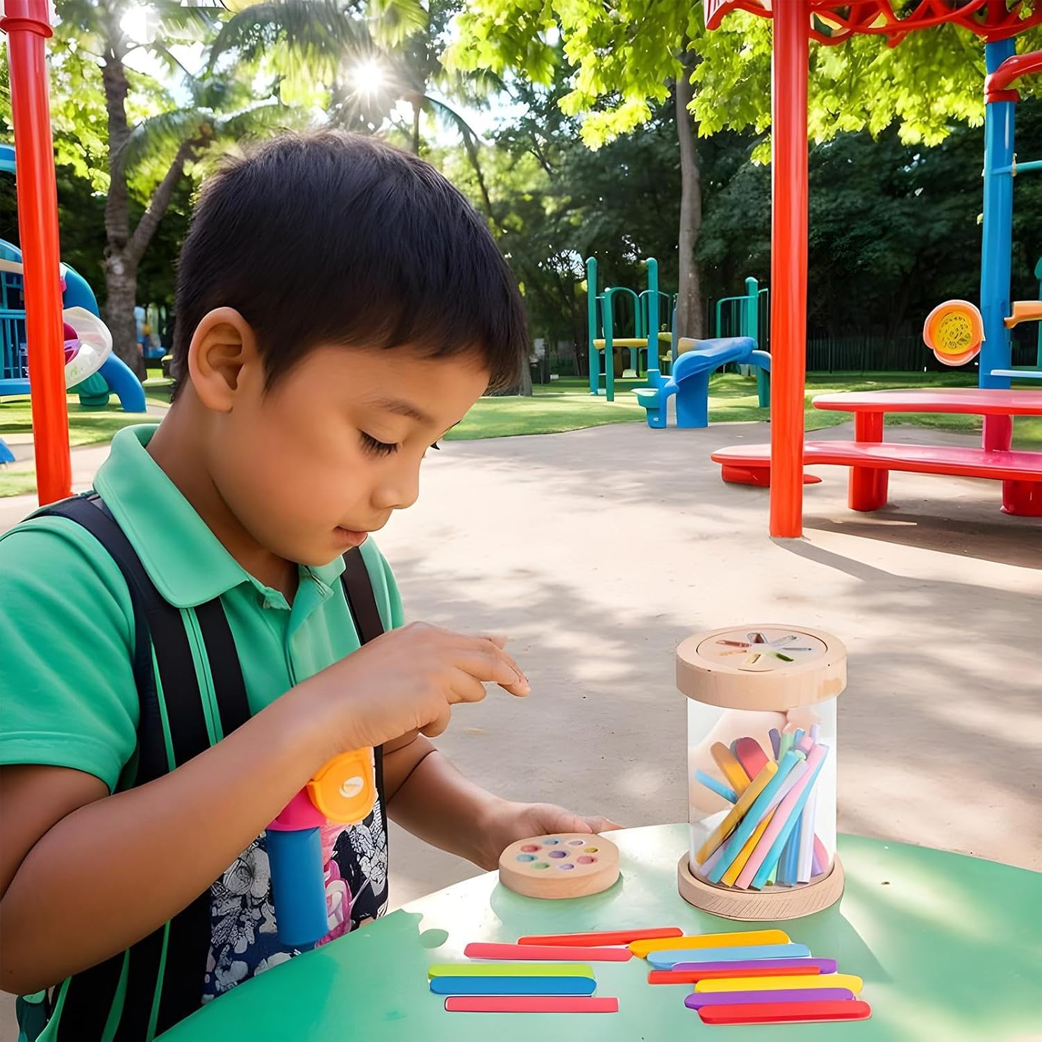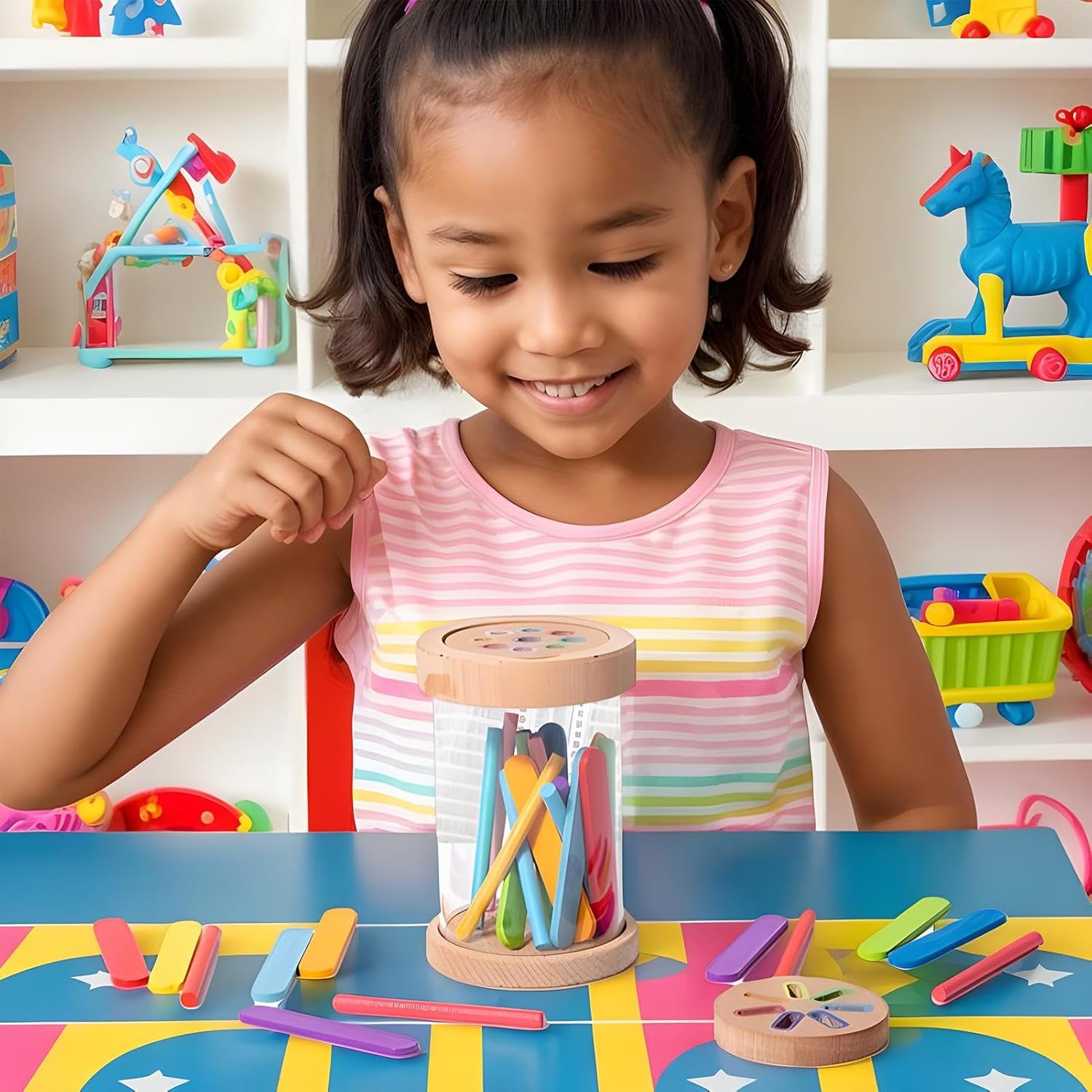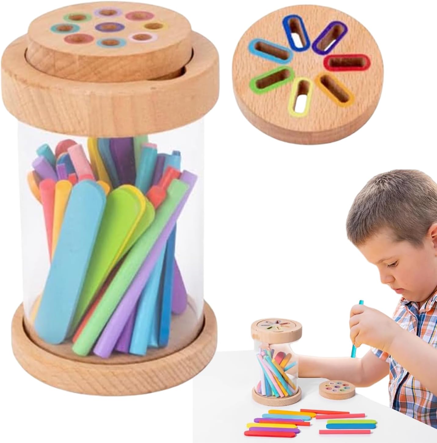 Migliora il riconoscimento dei colori: stimola lo sviluppo della prima infanzia e migliora le capacità cognitive come il riconoscimento dei colori dei bambini posizionando i bastoncini nei fori corrispondenti per un divertimento coinvolgente. Migliora le capacità motorie: i colori accattivanti sui bastoncini di questo giocattolo catturano gli sguardi e attirano l'attenzione dei bambini piccoli, incoraggiando l'apprendimento attivo e il coinvolgimento per un lungo periodo di tempo. Scintilla curiosità: il design trasparente mostra bastoncini colorati all'interno, affascinando i bambini con il fascino di osservare i cambiamenti di colore e la percezione visiva per migliorare lo sviluppo: progettato con materiali in legno con bordi lisci e senza tempi di taglio o sbavature per garantire un'esperienza sicura e inodore che non influisce sulla salute Regali squisiti: fornendo un'esperienza di gioco stimolante, questo giocattolo per lo smistamento dei colori è il regalo perfetto per i bambini in età prescolare per migliorare l'apprendimento e lo sviluppo a Natale, compleanni e festività