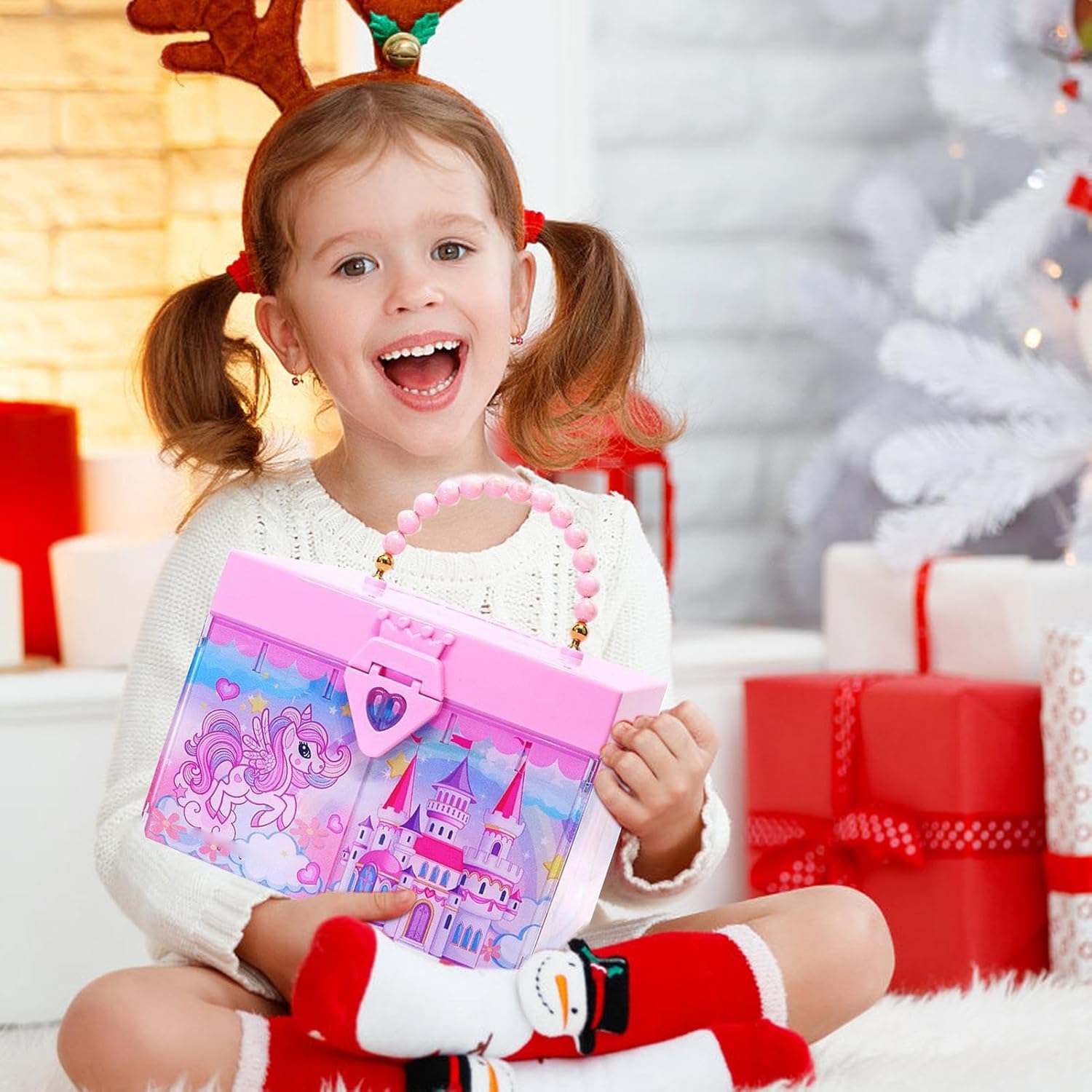 Viene fornito con un kit: completo di un kit per il trucco, un set di accessori per unghie, un set di strumenti per il trucco e un tavolo da trucco, questo kit per il trucco per bambini piccoli incoraggia un gioco più creativo e offre ore di gioco fantasioso. Sicuro da giocare: lascia volare l'immaginazione della tua bambina con questo kit di trucco per bambini piccoli. Realizzato con materiali sicuri solubili in acqua, non lascia macchie e può essere facilmente lavato con acqua e sapone. Adatto per ore di gioco sicuro e divertente. Comodo trasporto: lascia che il tuo piccolo organizzi facilmente i tuoi accessori per il trucco con la moltitudine di scomparti in questo kit per il trucco per bambini piccoli. È progettato con una maniglia ed è compatto e portatile, il che rende facile portarlo in vacanza o in auto. Immagina Between Your Play: Con diversi colori di trucco e smalto per unghie che trasformano qualsiasi sessione di costume, questo kit non solo incoraggia le abilità di trucco ma migliora anche le attività artistiche e artigianali. Bellissimo regalo: lascia che questo kit di trucco per bambini sia il modo perfetto per esprimere il tuo amore e cura con il suo design unico e l'aspetto affascinante, rendendolo un regalo ideale per la tua famiglia e gli amici.