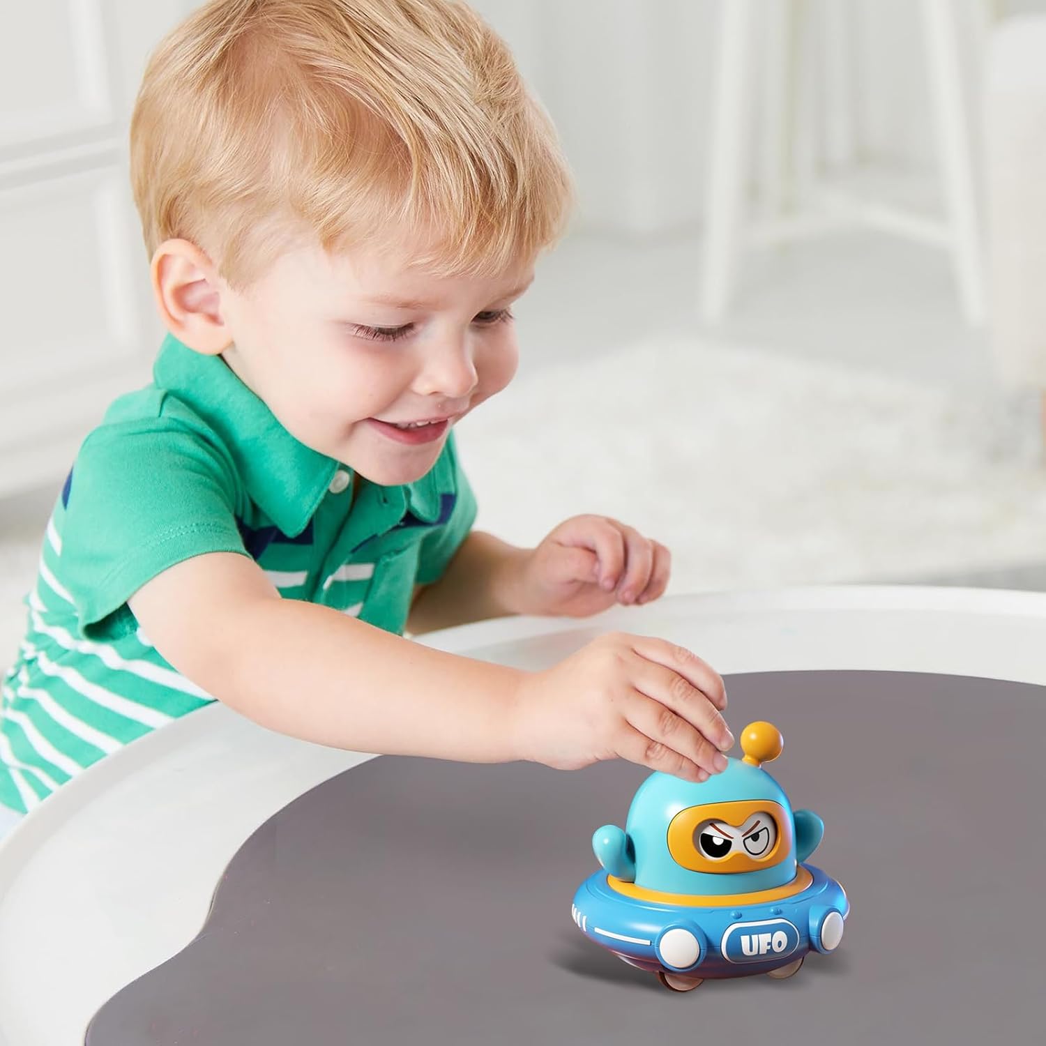 Supporto sviluppo: Concentrandosi su dimensioni adatte ai più piccoli e comfort di presa, questo giocattolo integra antenne texturizzate facili da afferrare per supportare modalità di gioco interattive e benefiche per lo sviluppo cognitivo e motorio. Materiali Sicuri: Il giocattolo quotidiano per la prima infanzia è realizzato con materiali sicuri e un design di sicurezza a bordi arrotondati, offrendo resistenza agli urti e flessibilità per sopportare una resilienza di gioco duratura, fornendo intrattenimento affidabile che promuove la creatività e le capacità motorie durante le attività quotidiane Movimento Avvincente: Grazie alla tecnologia a inerzia con ritorno automatico, questo giocattolo offre un funzionamento spingi e vai con ritorno autonomo, per stimolare la coordinazione occhio-mano e garantire ore di divertimento interattivo con giochi di inseguimento dinamico Stimolazione Gioco Sociale: Il giocattolo disco fornisce un divertente gioco interattivo con una funzione ruota e cambia, potenziando il divertimento del gioco di ruolo attraverso espressioni carine a doppia faccia per una stimolazione sociale coinvolgente e piacevole Divertimento Multi Giocatore: Il design elegante promuove un'esperienza di scivolamento fluido, assicurando prestazioni stabili che migliorano i giochi interattivi multi giocatore, rendendolo adatto per attività di raduni familiari o giochi con amici