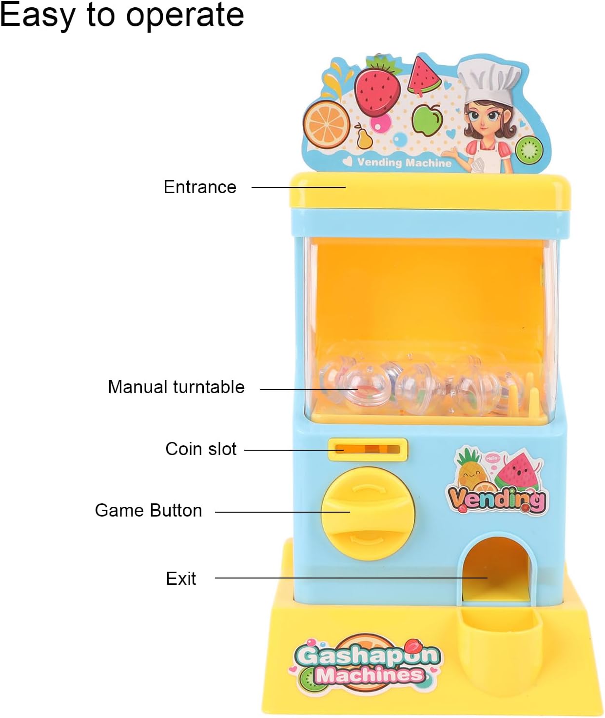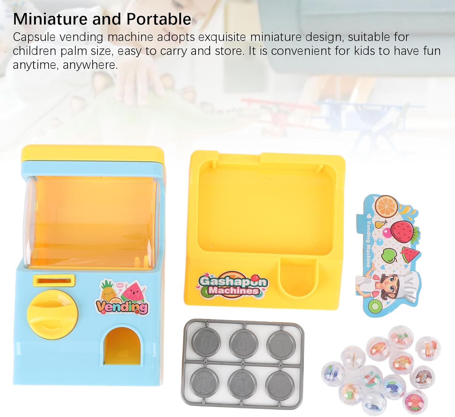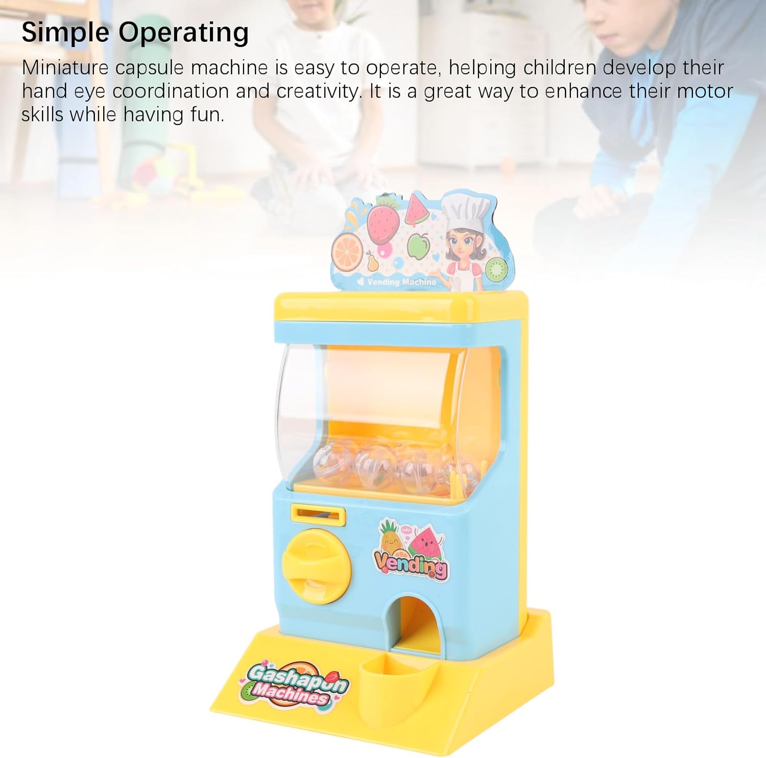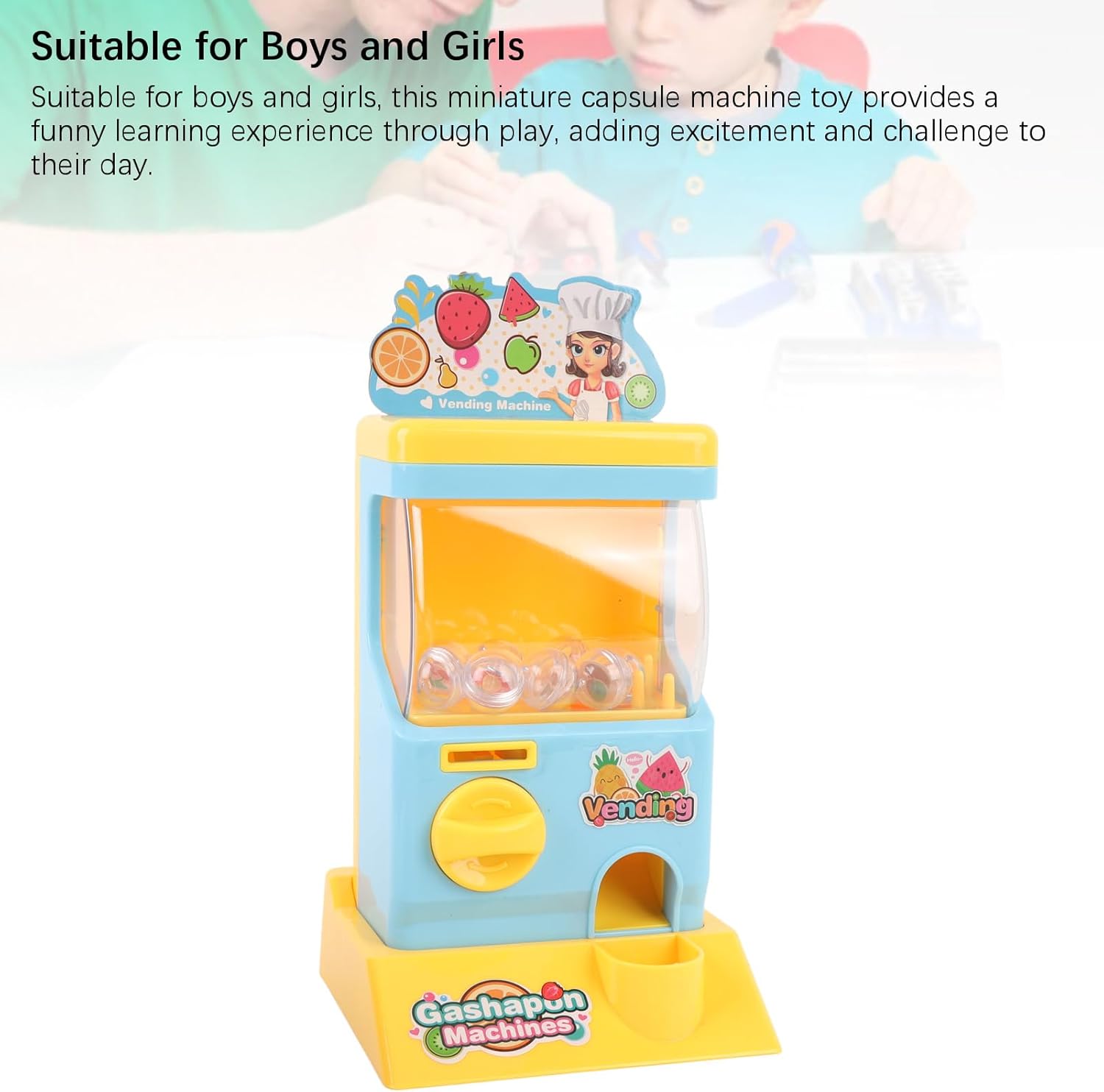 Intrattenimento tascabile: questo distributore automatico compatto capsule si adatta perfettamente a piccole mani, rendendolo un compagno di viaggio ideale per divertimento in movimento durante le gite o le date da gioco. Mystery Toy Discovery: ogni operazione offre eccitanti sorprese da collezione nascoste all'interno di capsule colorate, alimentando la curiosità e l'anticipazione dei bambini con ogni turno della manopola. Design di gioco intuitivo: il meccanismo semplificato incoraggia il gioco indipendent mentre sviluppa naturalmente capacità motorie e capacità di risoluzione dei problemi attraverso l'interazione. Divertimento inclusivo di genere: progettato per affascinare tutti i giovani esploratori, questo coinvolgente giocattolo ha scatenato scenari di gioco immaginativo mentre insegna ai principi di base causa-effetto. Avventura di apprendimento condiviso: un meraviglioso strumento di legame per le famiglie, questo simulatore di distributori automatici interattivi promuove il gioco cooperativo e la narrazione creativa durante le attività di gruppo.