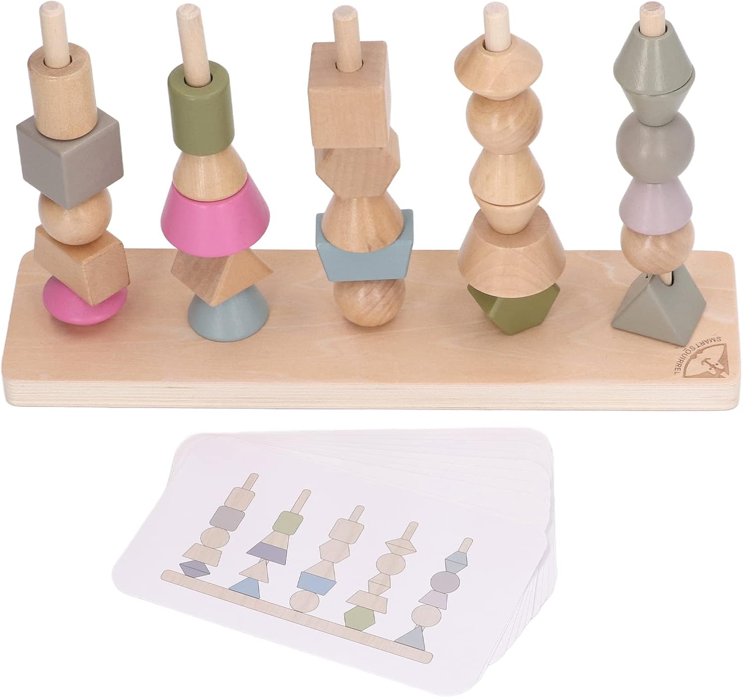 [KIT EDUCATIVO] Incoraggia l'apprendimento precoce con questo giocattolo educativo impilabile in una varietà di forme e colori. [INCLUDE 10 CARTE] Include 10 carte modello in modo che i bambini possano abbinare e disporre i blocchi secondo i disegni mostrati. [SVILUPPO DELLE COMPETENZE] Aiuta a promuovere la coordinazione occhio-mano, le capacità motorie, le capacità di risoluzione dei problemi e la creatività nei bambini. [ETÀ ADATTA] per bambini dai 3 ai 6 anni. Questo giocattolo aiuta nella prima educazione e nello sviluppo del pensiero logico. [MATERIALI DI ALTA QUALITÀ] Realizzati in legno di pino, i blocchi sono durevoli, sicuri e progettati con bordi arrotondati per la sicurezza dei bambini.