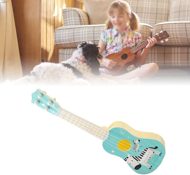 PRATICO ED EDUCATIVO: questo mini giocattolo per chitarra aiuta i bambini a sviluppare la percezione musicale, la coordinazione occhio-mano e le capacità di espressione musicale, stimolando così la loro creatività e immaginazione MOTIVI DI ANIMALI COLORATI: sul giocattolo dell'ukulele vengono utilizzati simpatici motivi di animali per attirare l'attenzione e l'interesse dei bambini, aumentare l'interesse per lo strumento e ispirare il loro amore per la musica. Materiali durevoli: questo giocattolo per ukulele per bambini è realizzato con eccellenti materiali plastici, durevoli e in grado di resistere all'uso e al gioco dei bambini. LEGGERO E PORTATILE: il mini giocattolo ukulele è piccolo e leggero, facile da trasportare e riporre. I bambini possono ascoltare la musica sempre e ovunque ed è il compagno ideale per le attività a casa, a scuola e all'aperto DESIGN ADATTO AI BAMBINI: questo strumento per bambini è progettato appositamente per i bambini, della giusta dimensione, facile da tenere e da suonare, consentendo ai bambini di imparare rapidamente e godersi la musica