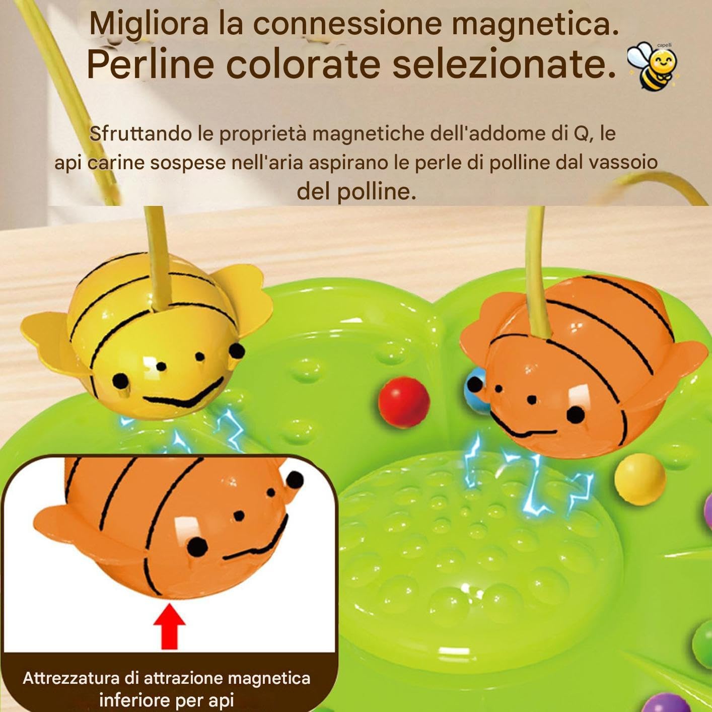 Avventura Creativa con : Bacchetta magnetica e design favoriscono l'esplorazione simulando l'impollinazione per un'esperienza educativa avvincente incentrata su avventure tematiche coinvolgenti Design Protettivo: Struttura con materiali sicuri e superfici levigate, garantisce gioco sicuro in casa, scuola o asilo , priorità alla sicurezza infantile senza componenti appuntiti o pericolosi Migliora la Coordinazione: Combina e concentrazione per sviluppare il pensiero logico e affinare la coordinazione occhio-mano, offrendo un modo coinvolgente di acquisire abilità attraverso attività interattive che stimolano l'apprendimento pratico e divertente Design Divertente: Colori vivaci e adorabili catturano subito l'attenzione dei bambini, rendendo il gioco più piacevole con un'esperienza di coinvolgente che stimola naturalmente divertimento e curiosità Gioco Interattivo: Potenzia comunicazione e teamwork tramite sfide multiplayer divertenti, promuovendo competizione familiare con turni nella raccolta condivisa di perle colorate