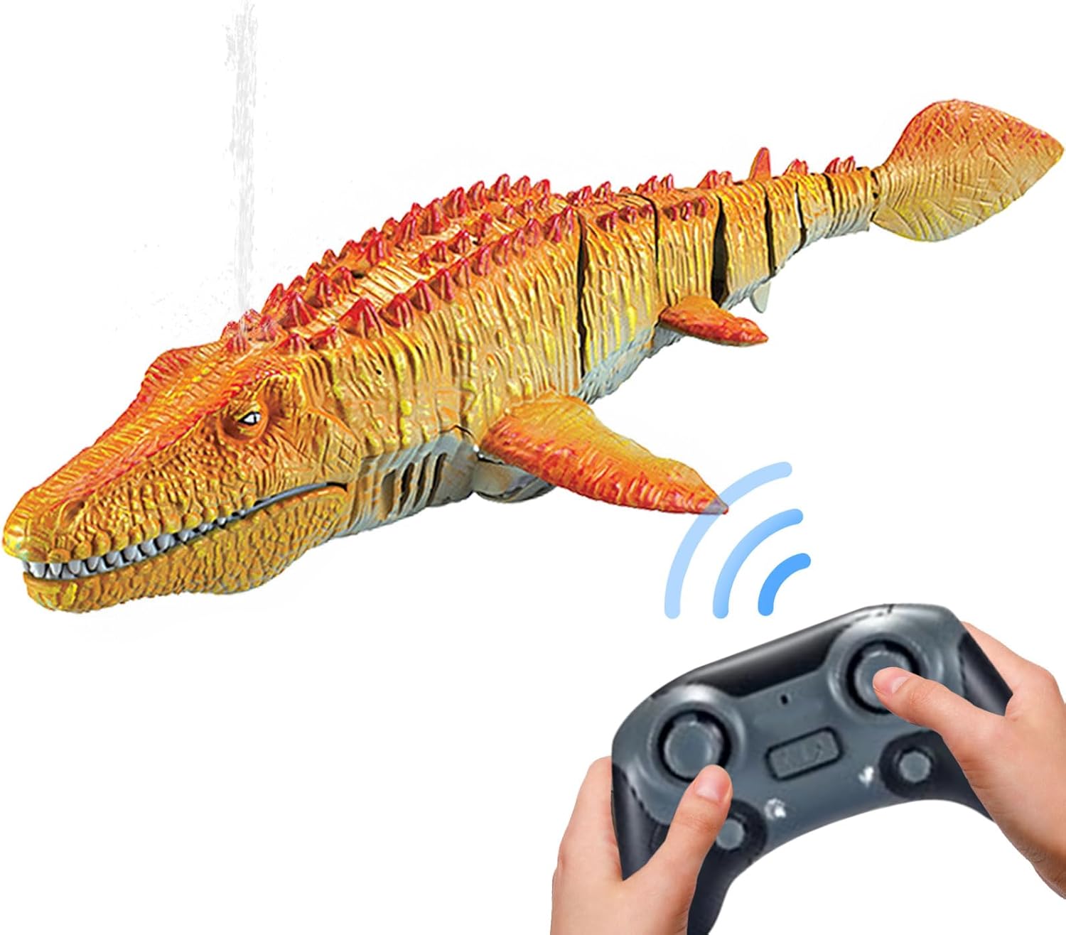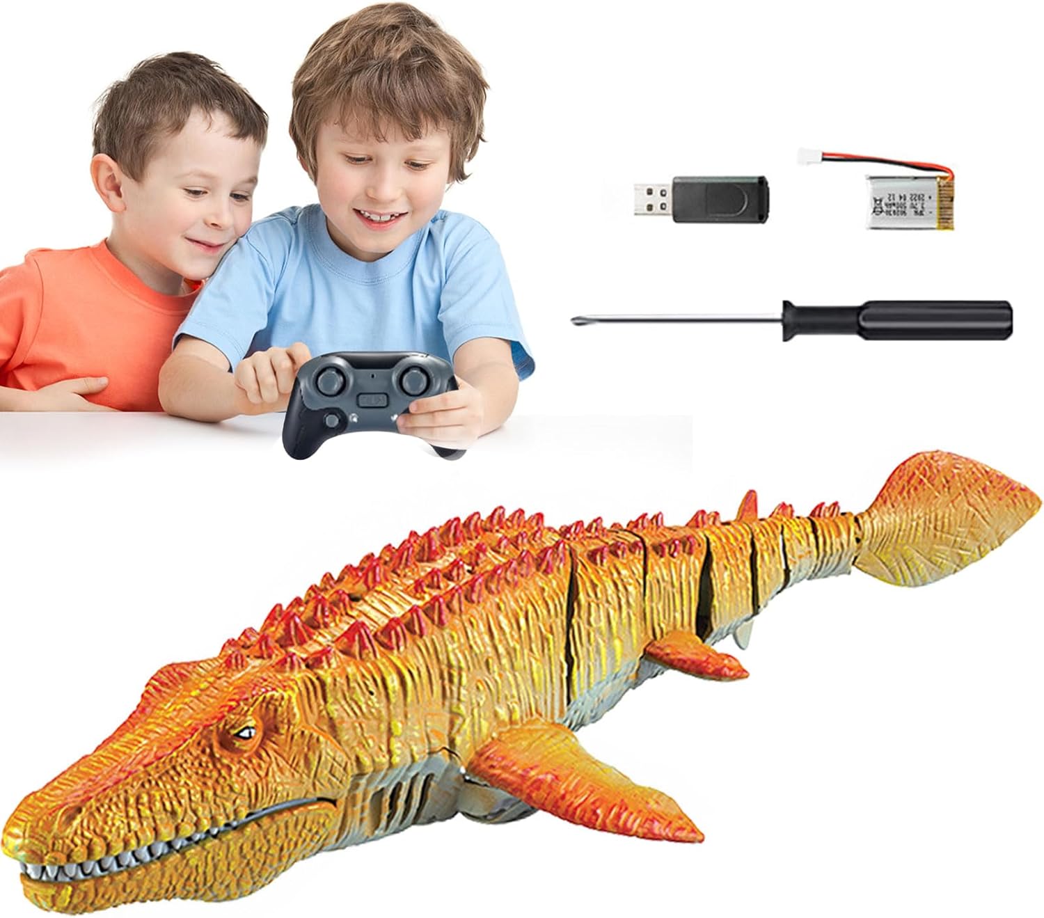 Forma di simulazione: questo giocattolo acquatico Mosasaurus adotta l'immagine di un drago di schiuma, che è realistico. Nuota liberamente nell'acqua secondo le istruzioni del telecomando e nuota in modo flessibile come un vero drago di schiuma, portando un'immaginazione illimitata. Materiale ecologico: adotta l'ABS, sicuro, ecologico, inodore, durevole, forma unica, squisita lavorazione e dettagli perfetti, questo giocattolo Water Mosasaurus ha un'articolazione della coda flessibile. Telecomando a lunga distanza: con telemetria 2,4 GHz e dimostrazione a un pulsante, il giocattolo Mosasaurus da nuoto può facilmente controllare a distanza il mosasaurus per avanzare e indietro, accelerare o spruzzare acqua nel lago o o in piscina, rendendolo divertente per loro. Batteria ricaricabile integrata: c'è una batteria ricaricabile integrata da 3,7 V 500 mAh con un cacciavite. Questo giocattolo da piscina Mosasaurs è comodo per collegare o rimuovere la batteria e continuare a usarlo dopo la ricarica, il che è molto conveniente. Si noti che il telecomando non include batterie, è necessario preparare da soli 2 batterie. Regalo significativo: questo giocattolo da immersione Mosasaurus è perfetto per regali di vacanza, giocattoli da bagno e giocattoli da piscina, portando un piacere infinito e stimolando l'immaginazione di chi ama le creature marine.