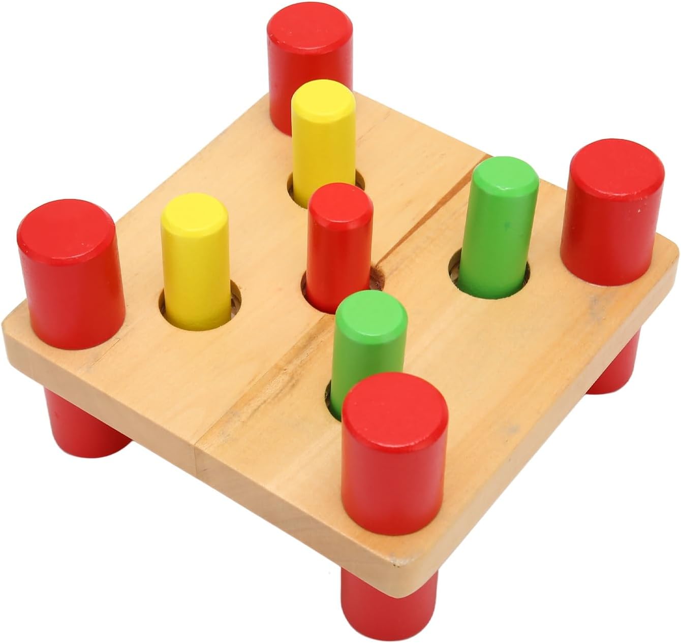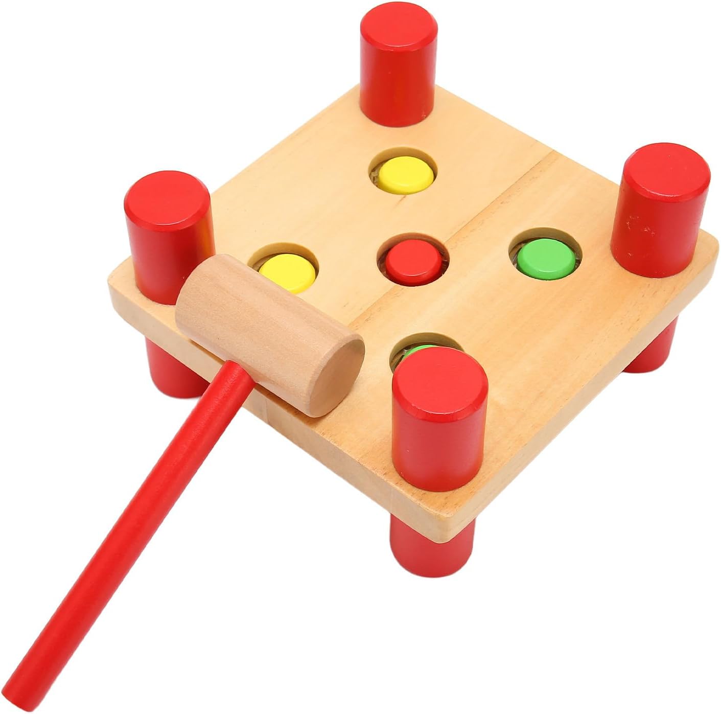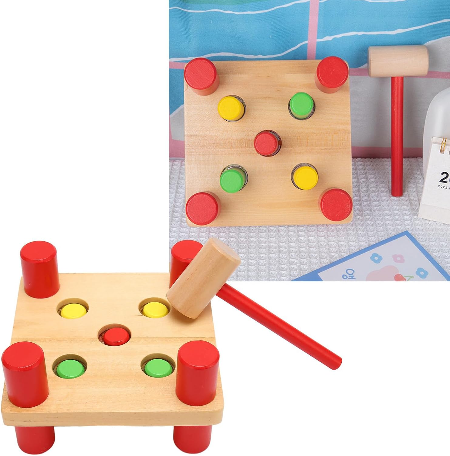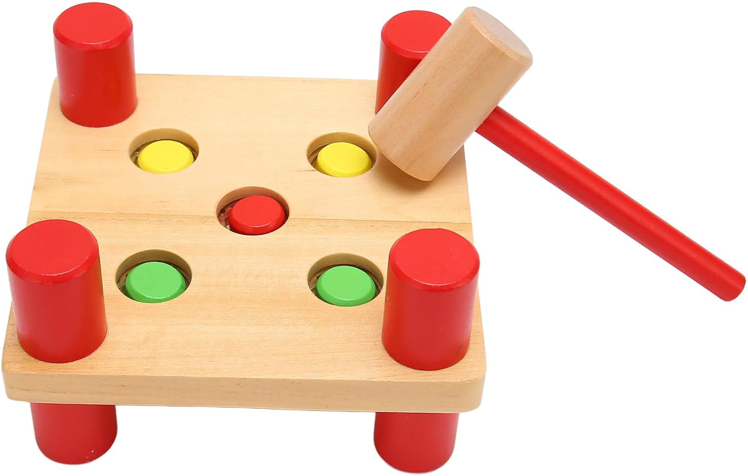 [Materiale in legno sintetico sicuro] Realizzato in legno sintetico atossico con angoli arrotondati, fornisce un ambiente di gioco sicuro per i bambini. [Colorato ed educativo] Questo giocattolo presenta 3 colori vivaci e 9 penne, incoraggiando lo sviluppo visivo e le abilità di conteggio in modo coinvolgente. [Migliora la coordinazione occhio-mano] Con questo giocattolo interattivo da banco per timbratura, puoi sviluppare la coordinazione e le capacità motorie del tuo bambino. [Idea regalo perfetta] Sorprendi tuo figlio con questo martello giocattolo in legno, per compleanni e occasioni speciali. [Stabile e sicuro] Gli anelli di gomma nei fori assicurano che i picchetti siano tenuti saldamente durante l'uso, fornendo stabilità durante il gioco.