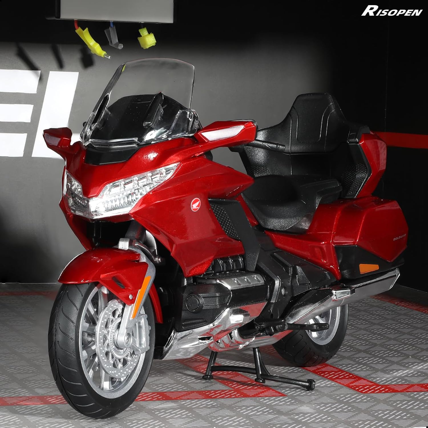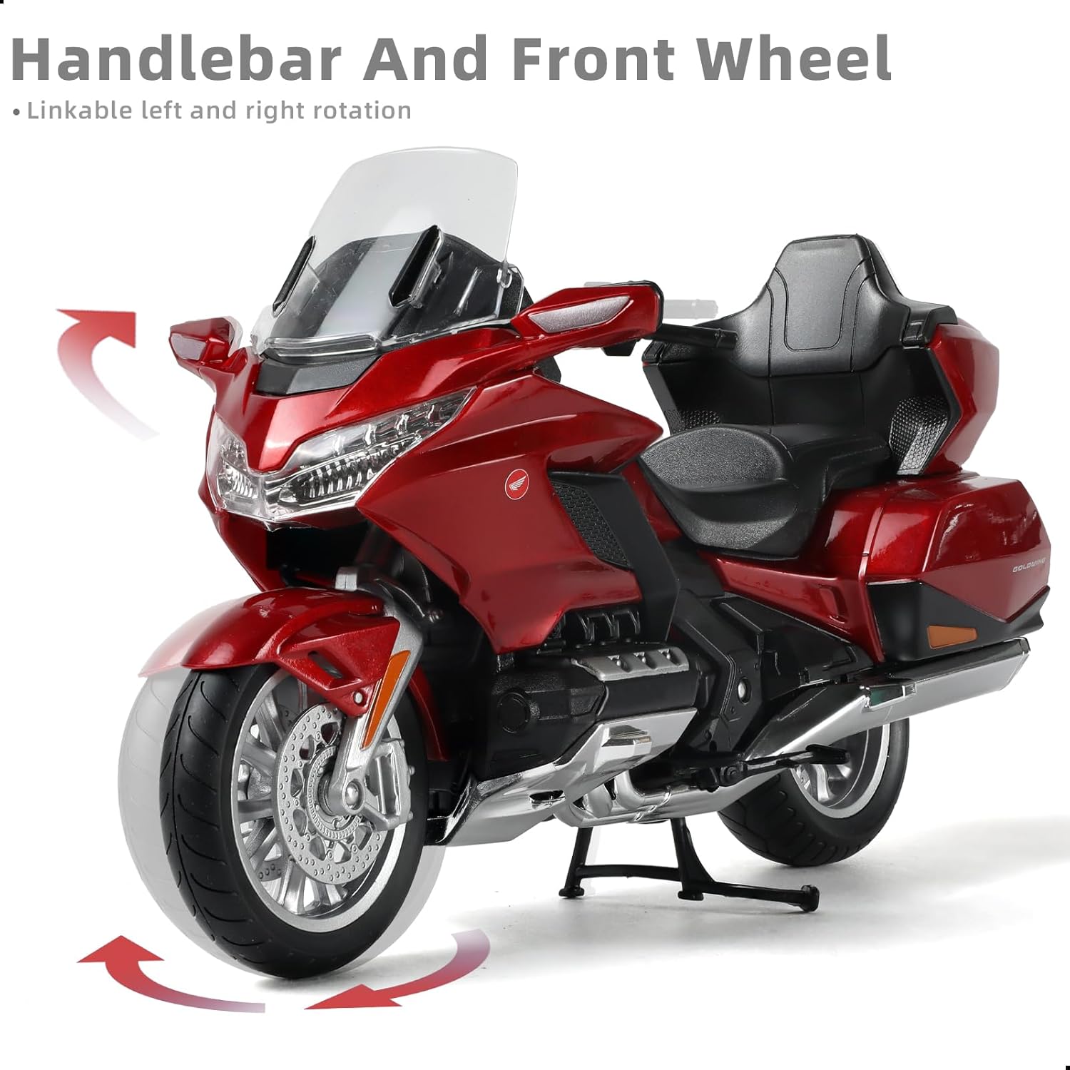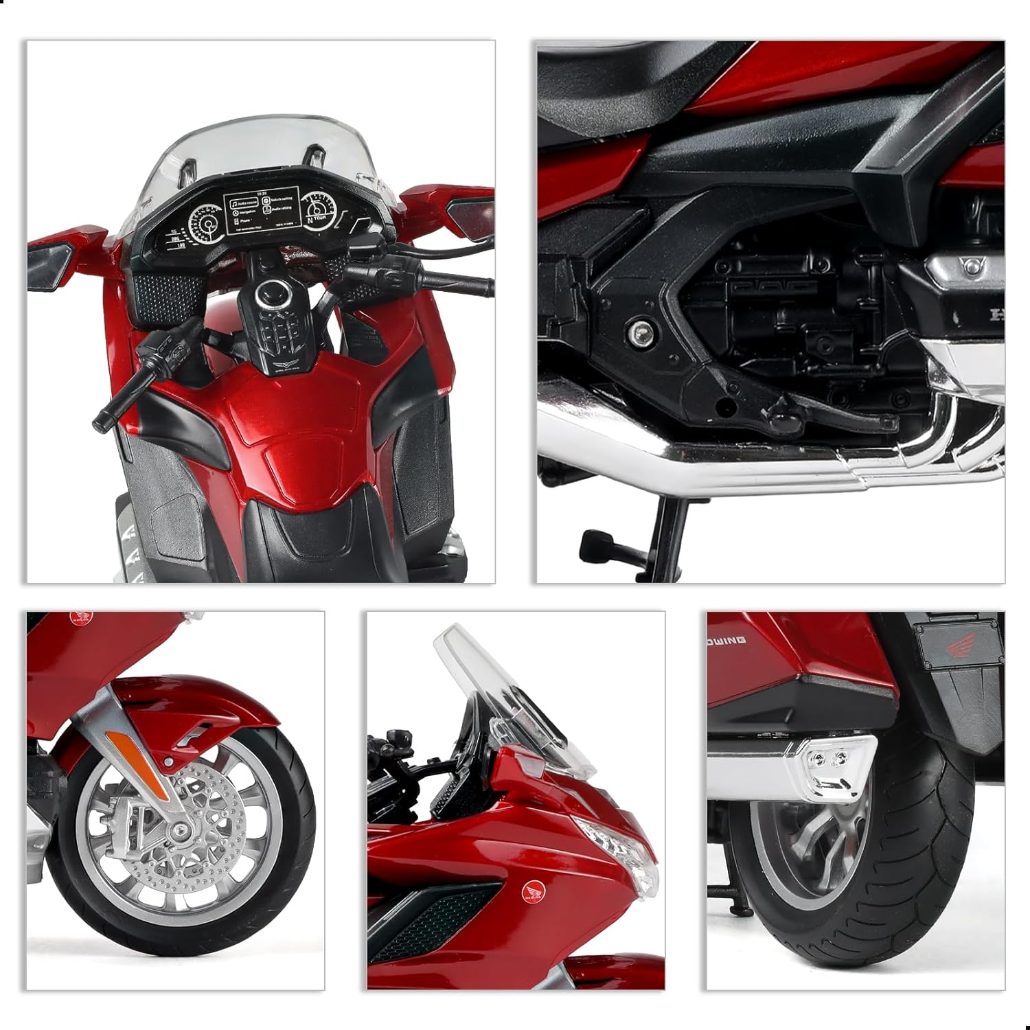 GOLDWING - Il modello di moto compatibile per Honda Gold Wing combina un telaio preciso e raffinato con un motore unico che è abbastanza fluido e lucido per la guida quotidiana, offrendo allo stesso tempo prestazioni comprovate in pista. La carrozzeria aerodinamica funziona bene come sembra e, come puoi vedere, è spettacolare. Questo giocattolo modello di motocicletta compatibile per Honda Gold Wing riproduce accuratamente l'aspetto e i dettagli del modello di motocicletta compatibile per Honda Gold Wing, fornendo un realismo straordinario e una lavorazione squisita.