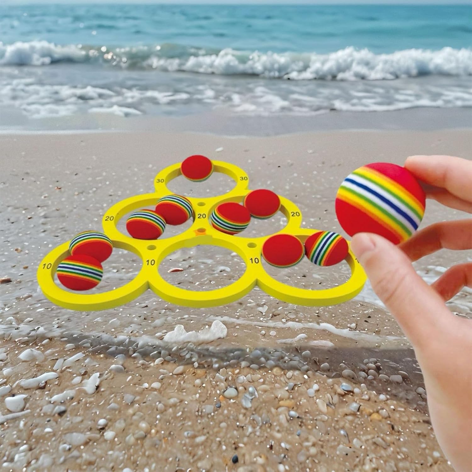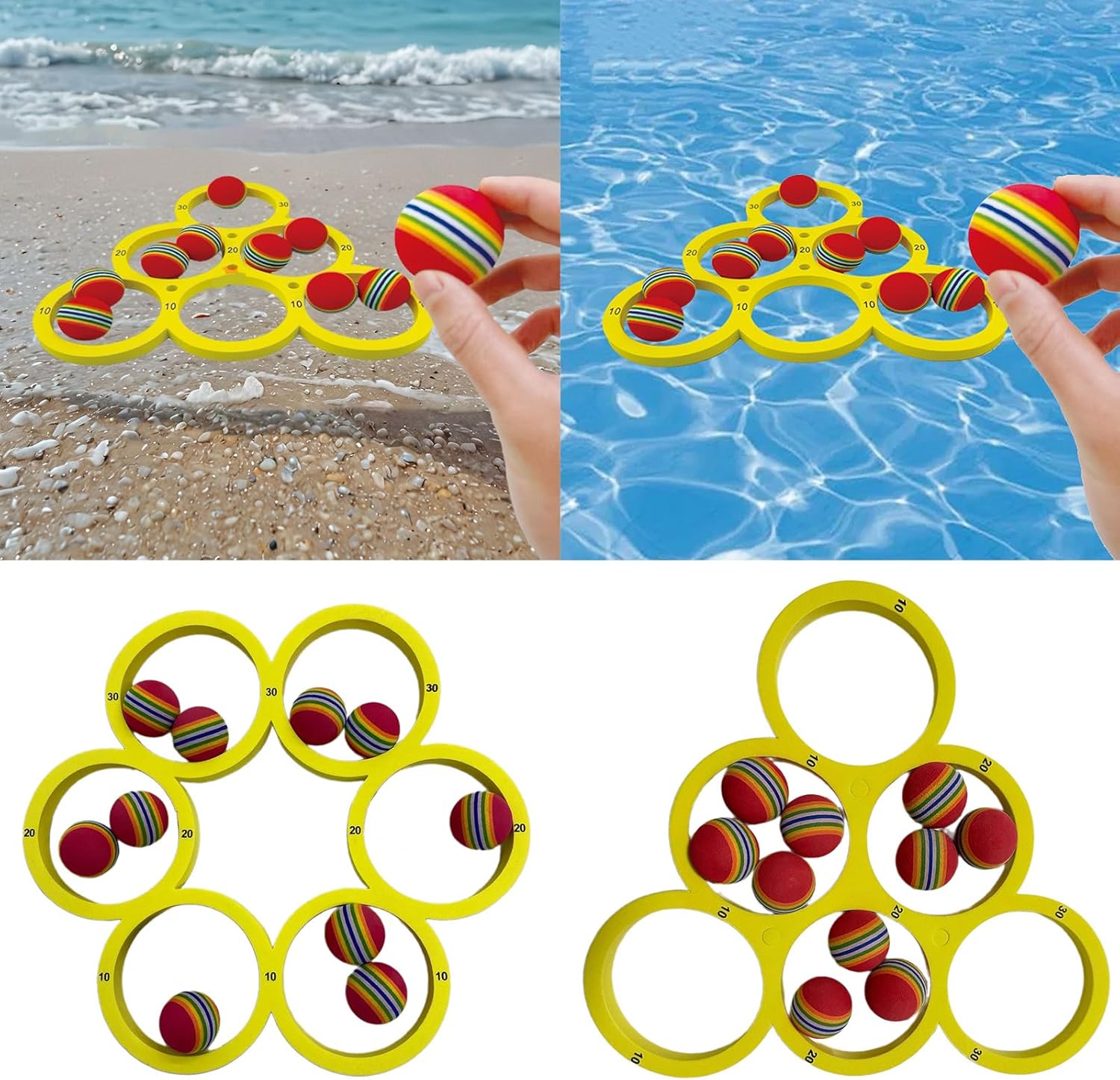 Palline luminose e colorate con arcobaleno e anelli galleggianti rendono i momenti di gioco facili da divertirsi Per varie età, questo giocattolo per sport acquatici garantisce divertimento in famiglia di tutta la generazione Adatto per spiaggia, piscina o lago Composto da copolimero acetato di vinile di etilene, questi giocattoli da piscina resistono a ore di gioco in acqua Migliora la precisione di lancio con questo coinvolgente gioco di lancio galleggiante in piscina