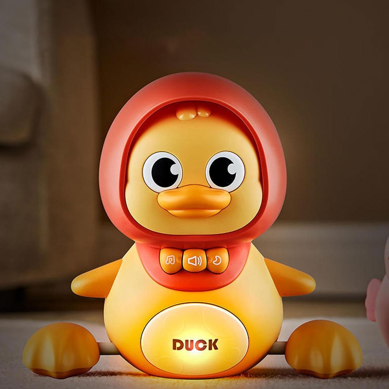 Crawl Along Fun: Con questo giocattolo d'anatra musicale interattivo, li può strisciare con l'anatra, migliorare le loro abilità motorie e imparare a seguire il movimento divertente. Divertimento interattivo: intrattenere i vostri con la funzione di adsorbimento magnetico che permette a questo giocattolo musicale d'anatra di formare una lunga linea, rendendolo ideale per i giochi di gruppo. Comfort anti-abbagliamento: con due modalità di illuminazione, fissa o lampeggiante, il nostro giocattolo musicale anatra crea un'illuminazione morbida per un'atmosfera confortevole e rilassante al momento di coricarsi. La funzione notturna può essere facilmente controllata premendo lo stomaco, rendendolo un buon compagno notturno per il tuo bambino. Melodie melodiche: con una ninna ninna che fonde il rumore bianco e le onde dell'oceano della natura, questo giocattolo musicale anatra può fornire melodie rilassanti per calmare e confortare i tuoi. Inoltre, offre melodie personalizzate per le preferenze musicali di tuo figlio. ABS resistente agli urti: proteggi il tuo bambino dalle cadute con il nostro giocattolo musicale anatra realizzato in materiale ABS resistente. Il suo design delicato sulla pelle e resistente garantisce la massima sicurezza, rendendolo ideale per i file.