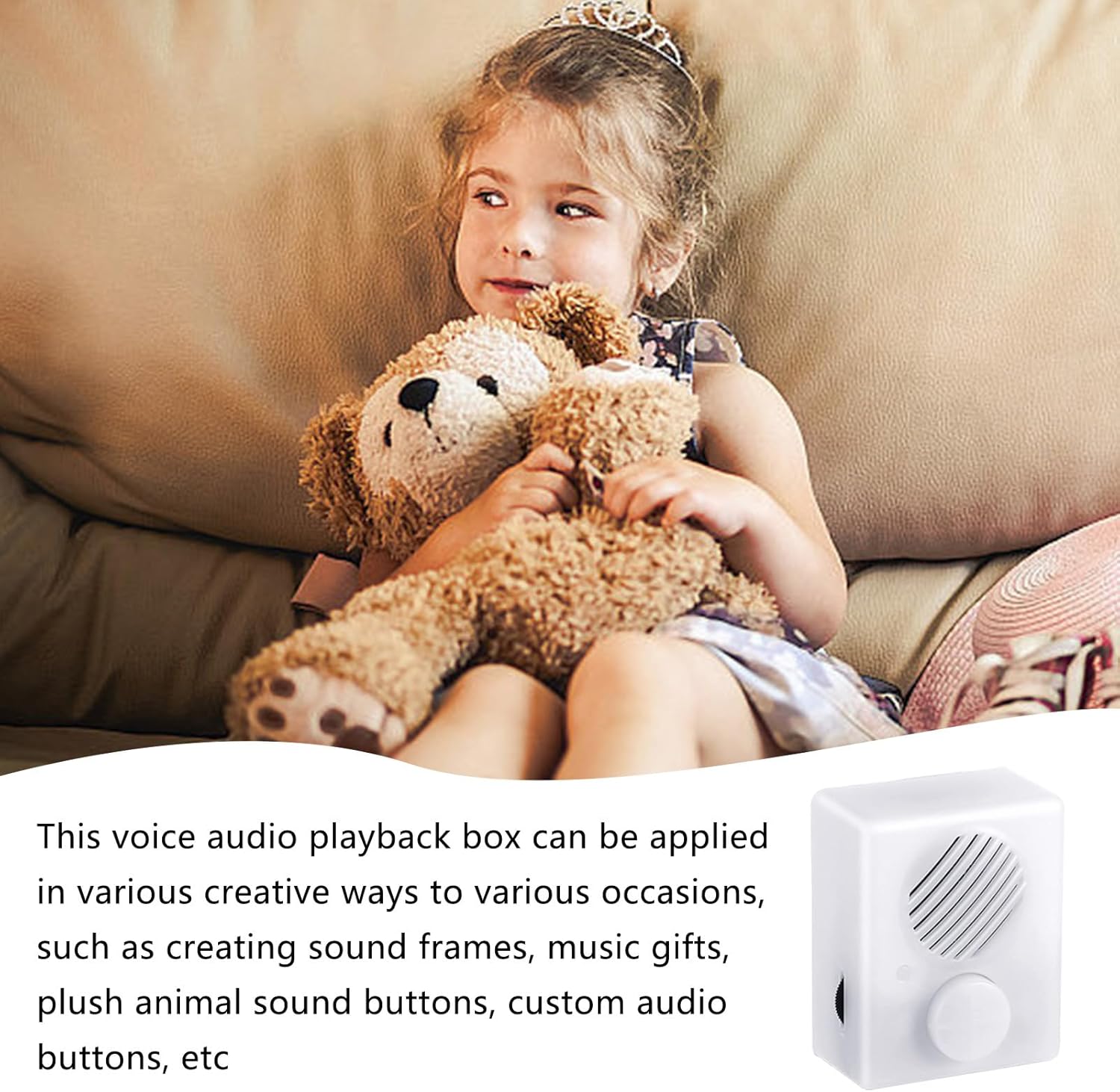 Toy Sound Voice Box: Cattura senza sforzo e rivivi momenti gioiosi con questo registratore vocale animale; puoi registrare e riprodurre fino a 360 secondi, rendendo ogni giocattolo di peluche, orso o bambola un ricordo senza tempo. Progettato per riutilizzare: anche con la sostituzione della batteria, questo piccolo box vocale assicura che le registrazioni rimangano intatte, e le batterie riutilizzabili assicurano che tu possa registrare i messaggi senza sforzo. Perfetto per fatto a mano: un regalo unico e indimenticabile con questo registratore di suono; Rendilo unico e preserva il tuo audio per anni, perfetto per qualsiasi progetto di elaborazione. Facile da lavorare con: collegare la scatola del lettore audio al computer con un cavo, premere il pulsante per iniziare a riprodurre l'audio e cambiare facilmente le tracce se necessario. Regola il volume con facilità e completa il fastidio senza problemi di conversione. Ampiamente applicabile: solleva il tuo gioco audio con questo registratore audio perfetto per varie applicazioni, che si tratti di cornici audio, lussuosi pulsanti audio animali, pulsanti audio e altro; Crea melodie celebrative cambiando le tue melodie preferite.