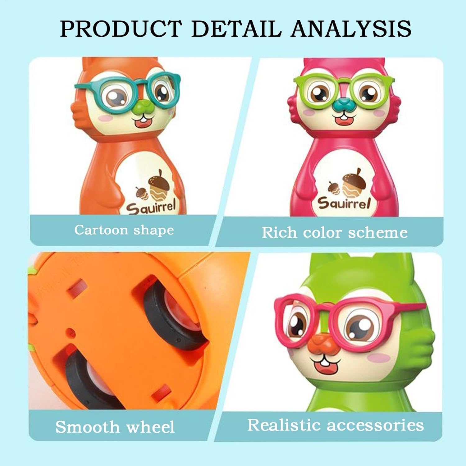 Vieni con un kit: adorabili forme di animali in colori vivaci sono coinvolti e intrattengono il tuo bambino, promuovendo la curiosità e migliorando le loro abilità di cognizione visiva per ore di arricchimento Giocattoli divertenti: promuove le abilità motorie del bambino e il coordinamento degli occhi della mano con un divertente design di stampa e diapositiva, promuovendo l'esplorazione sensoriale coinvolgente e il Usa in modo sicuro: la sicurezza del tuo bambino è garantita mentre è in uso grazie al materiale ABS sicuro. Le superfici lisce senza bara aiuteranno a impedire alla pelle del tuo bambino di rimanere graffiata Conservare l'energia: eliminare la necessità di batterie con la pressa e andare in auto, permettendo ai bambini di giocare in modo più sicuro e godersi il divertimento per risparmiare energia senza il rischio di perdite Ampia gamma di applicazioni: garantisce ai bambini più divertenti e intrattenimento fornendo loro esperienze di quotidiane memorabili che sono perfette per premi ed eventi